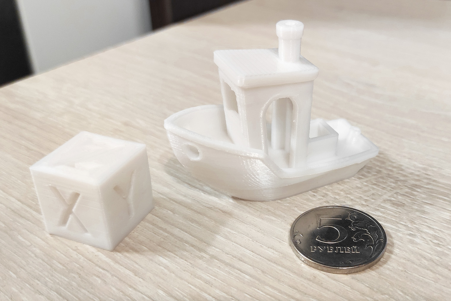 Все напечатанные предметы получаются гладкими и приятными на ощупь. Приходится потратить примерно пять минут на то, чтобы убрать нижний слой пластика, который фиксирует предмет на столике и слегка выходит за габариты.