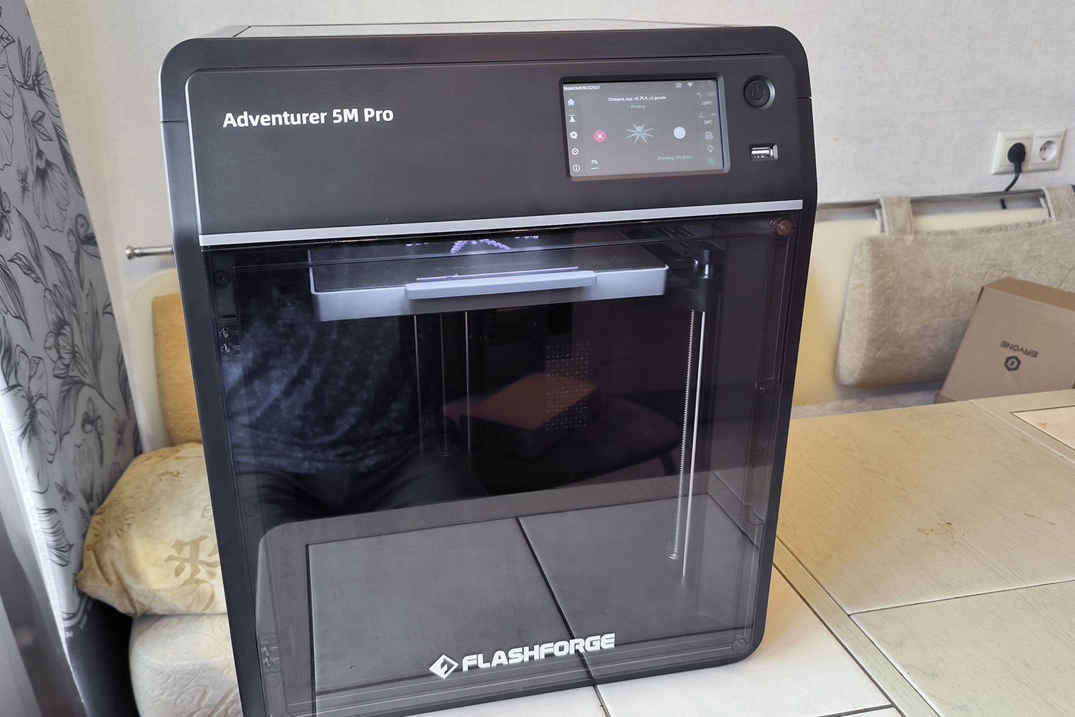 В выбранном на замену принтере FlashForge Adventurer 5M Pro размер напечатанного предмета ограничен 220 × 220 × 220 мм: цветочный горшок влезет, а коробка для взрослой обуви уже нет. Но при желании можно напечатать более крупный предмет из нескольких частей и соединить их.
