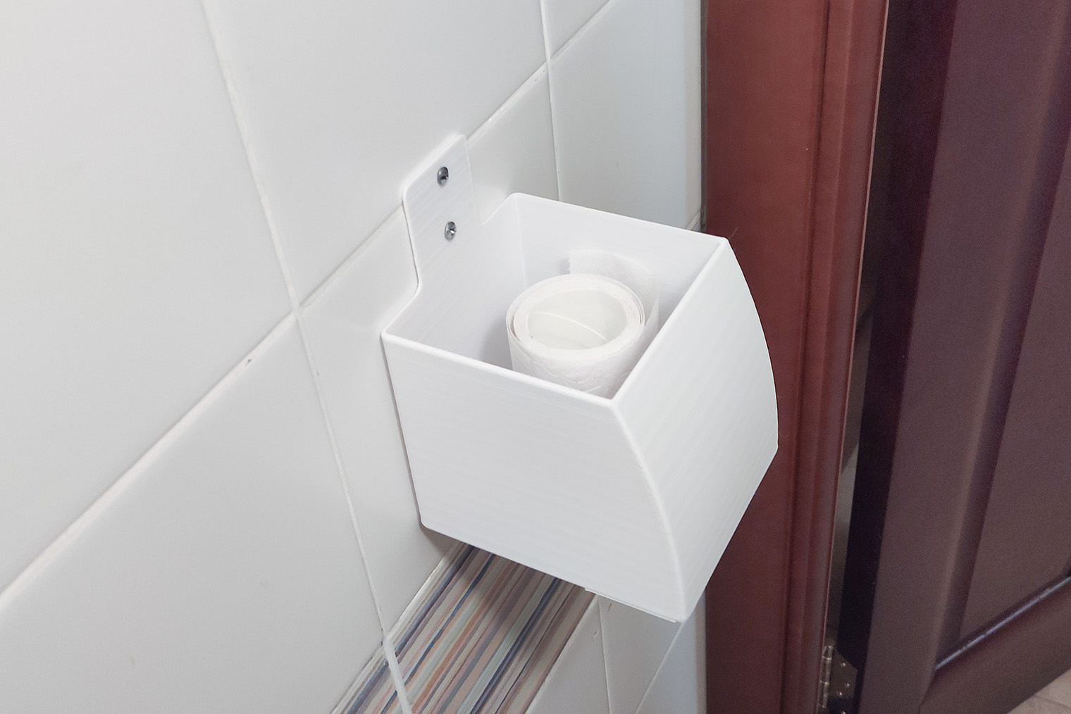 В начале статьи я упоминала коробочку для туалетной бумаги. Кошки повадились разматывать висящий на держателе рулон, а вешать бумагу под потолок или держать в прихожей совсем неудобно.