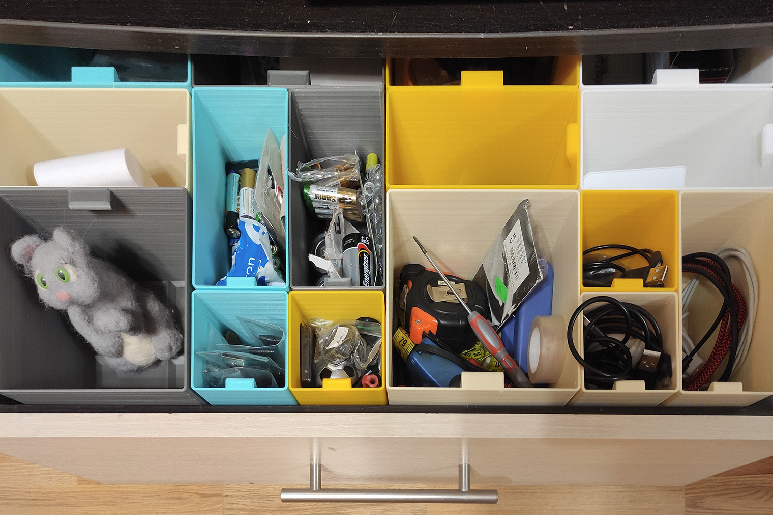 На этом все только начиналось. Стремясь к порядку в доме, мы придумали систему коробочек для разных мелочей: проводов, отверток, батареек. Также свою коробочку получил провод от домофона, потому что вездесущие кошки им очень интересовались.
