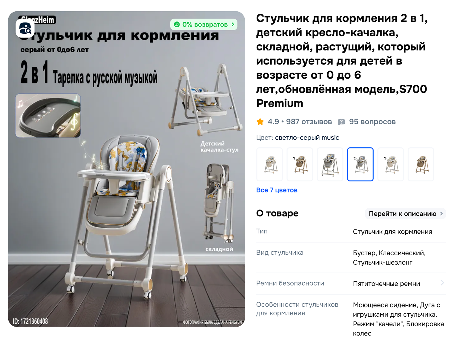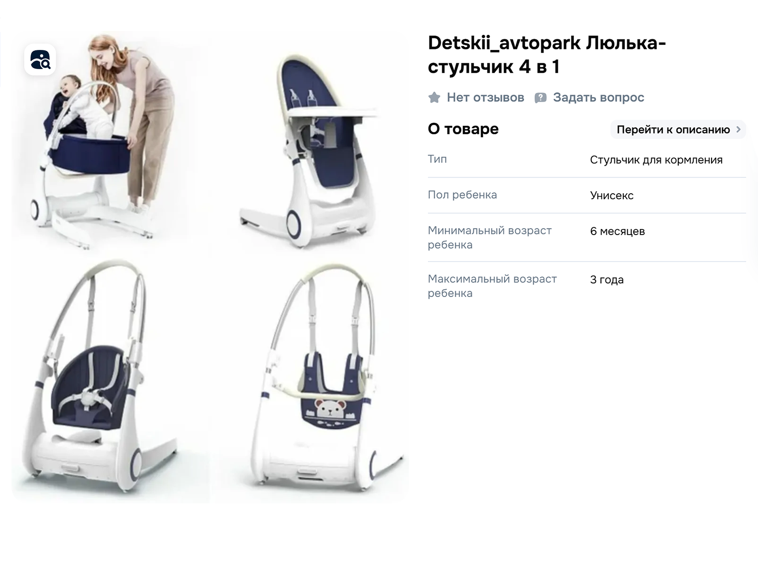 Когда сыну исполнилось полгода, родители мужа решили сделать нашей семье подарок — детский стул для кормления. Они предложили мне выбрать подходящий, а оплатить хотели сами. Я стала изучать варианты. Поиск выдавал самые разные стулья: шезлонги, навесные, бустеры, трансформеры, с колесиками и без, за 2 000 и 25 000 ₽.
