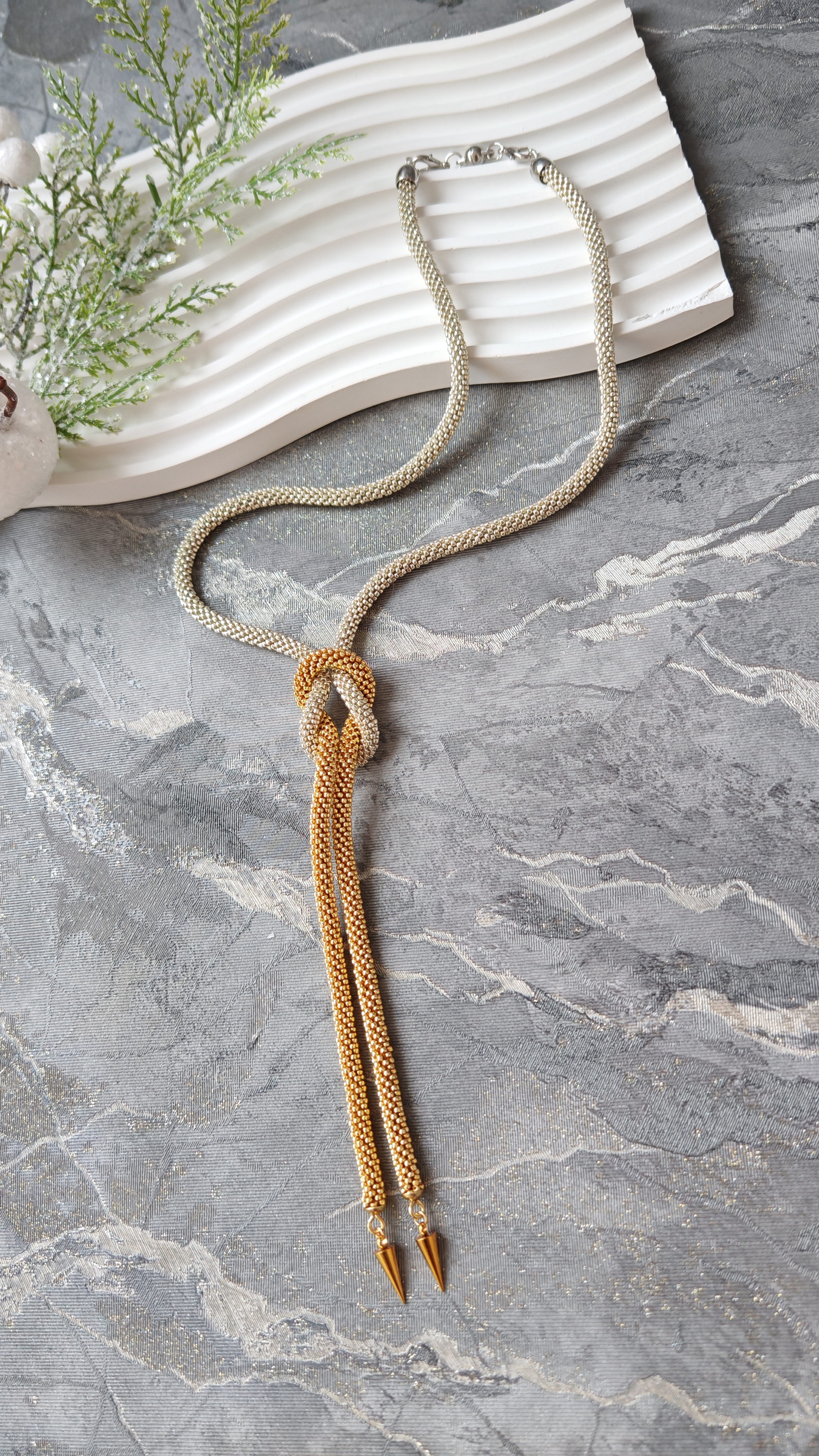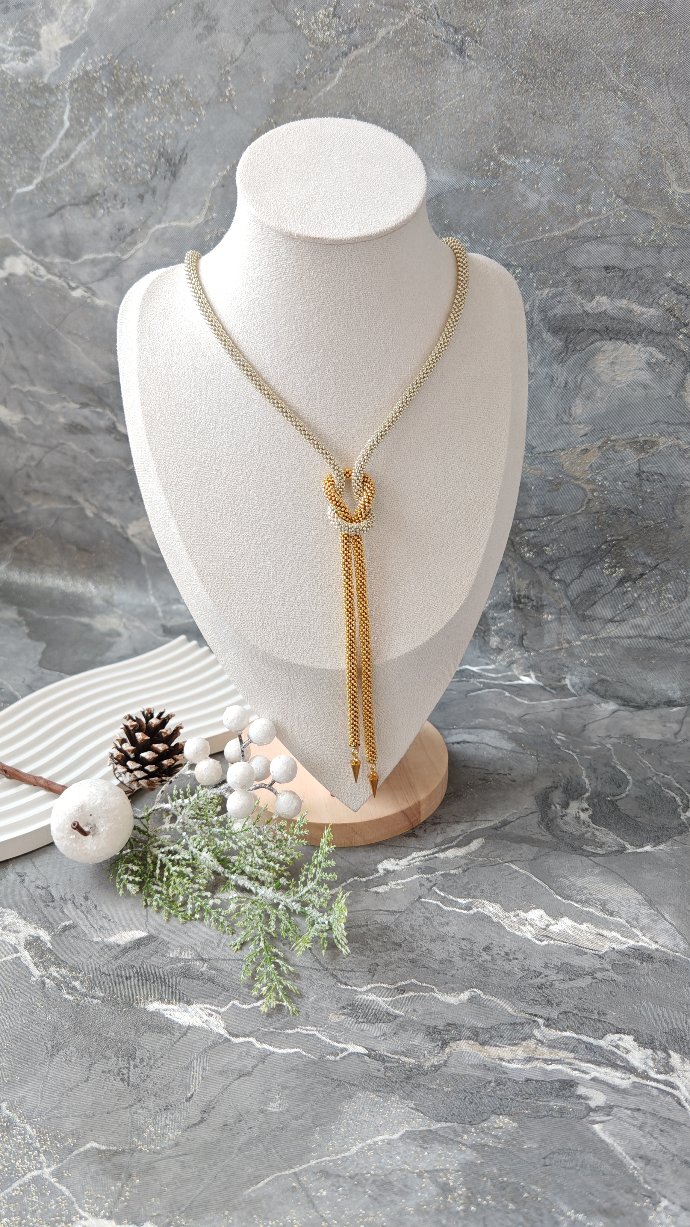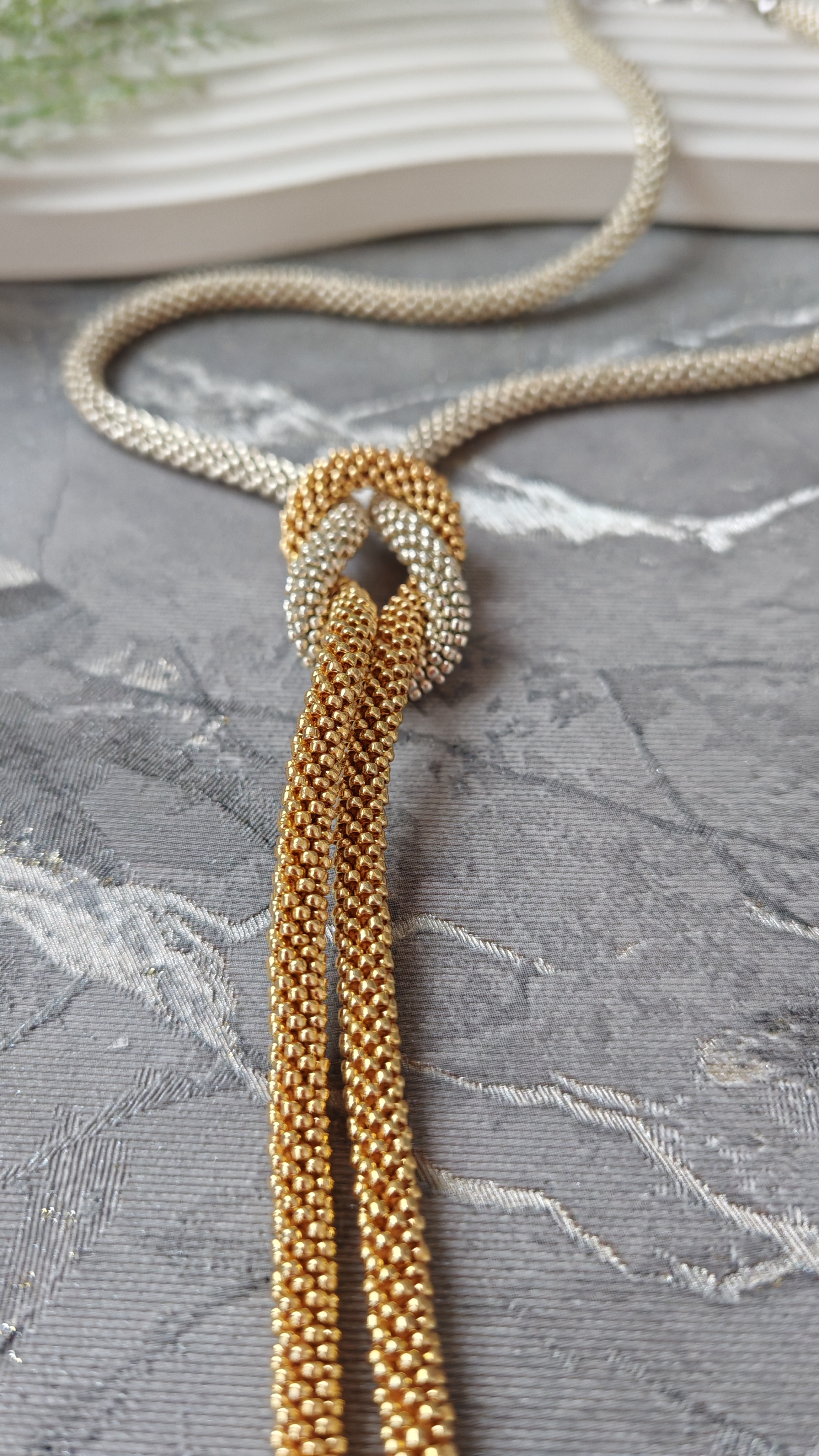 Связала шнурок золотой. Решила набрать серебра и тоже вязать… Украшение начало обретать формы… И как же оно мне нравится 🤦♀️🤦♀️🤦♀️Сильно😄 Получился биколорный роскошный галстук из мелкого бисера🤩