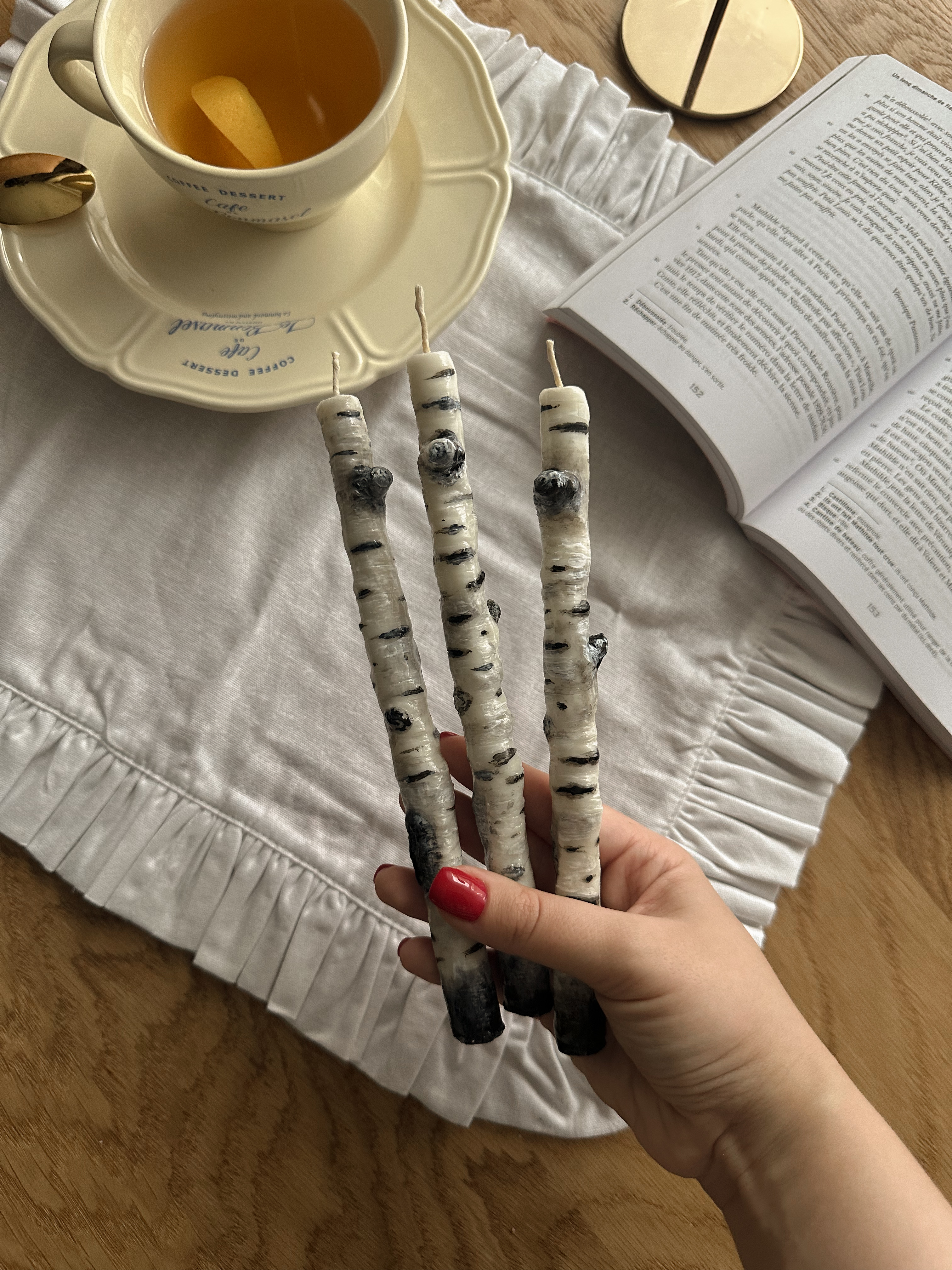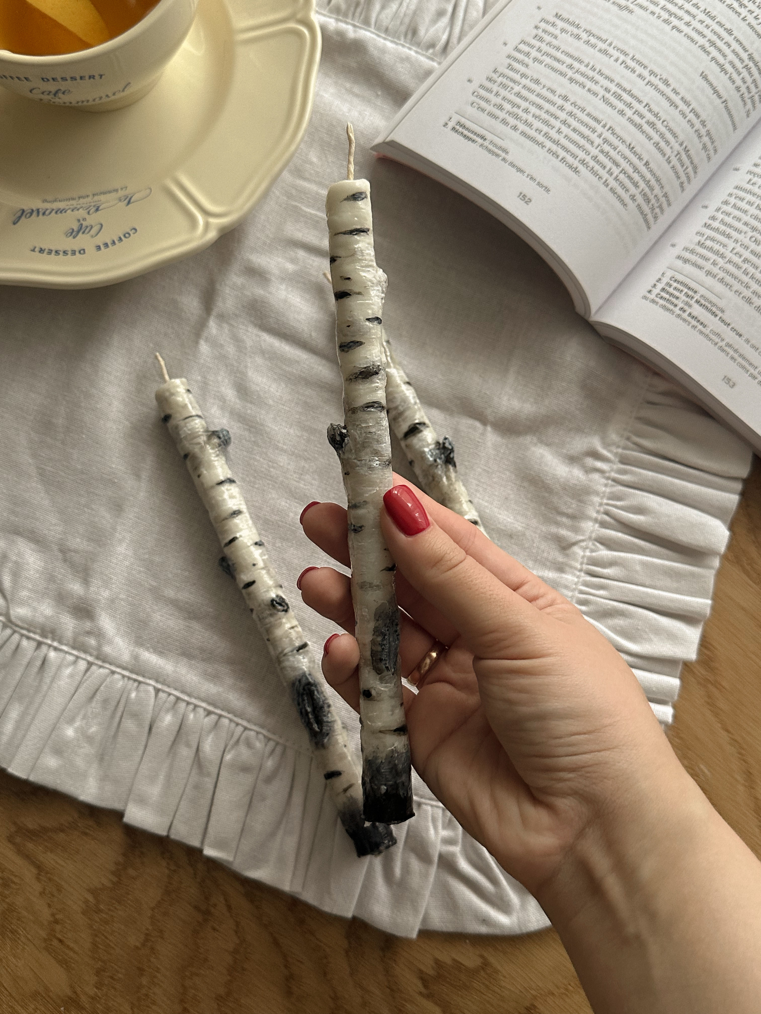 Ручная работа: столовые свечи «Веточки березы»