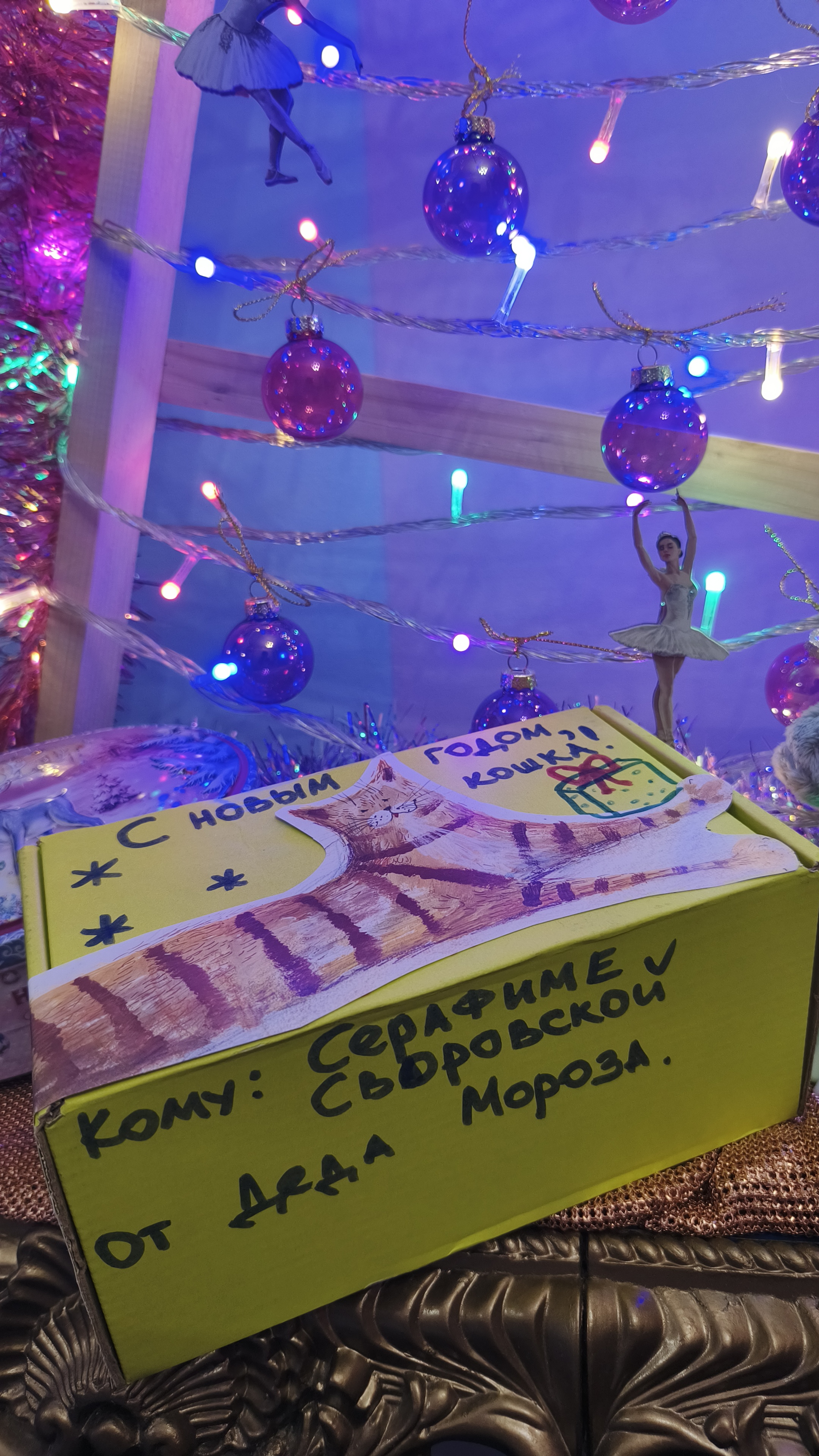 У кошки Серафимы своя, персональная ёлка и подарок 🎁 от Деда Мороза.