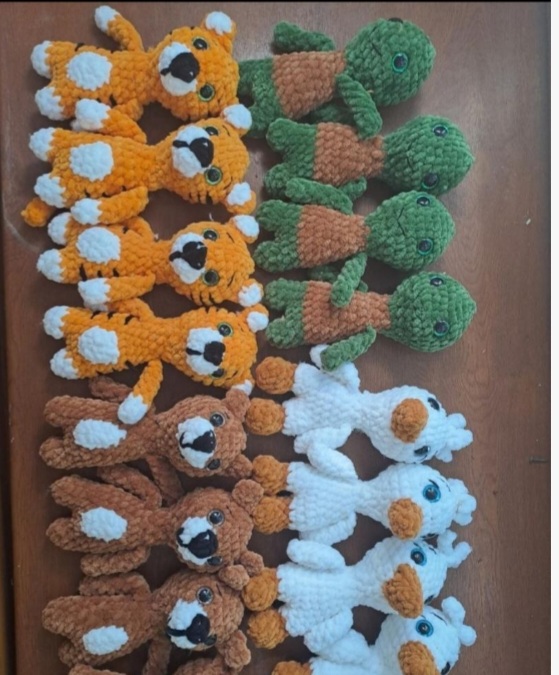 20 зверят (мой первый объёмный заказ), мишка Соня, мишка в худи, обезьянка.