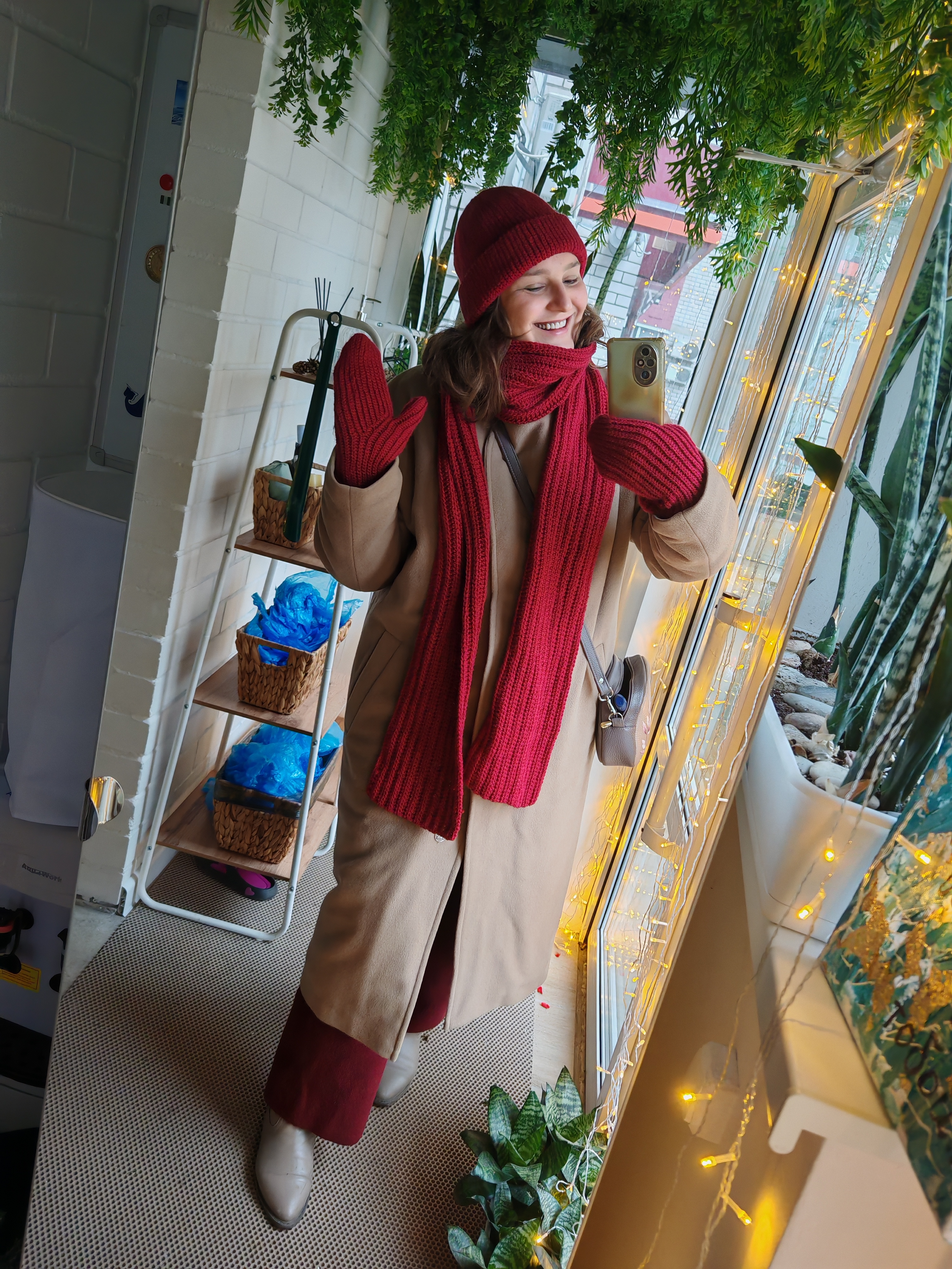 Единственный выгодный раз это комплект варежки, шапка и шарф обошёлся мне в 900р. Шарф 220см в длину, очень хотелось длинный, но с моим ростом обычные шарфы на мне так не будут смотреться.