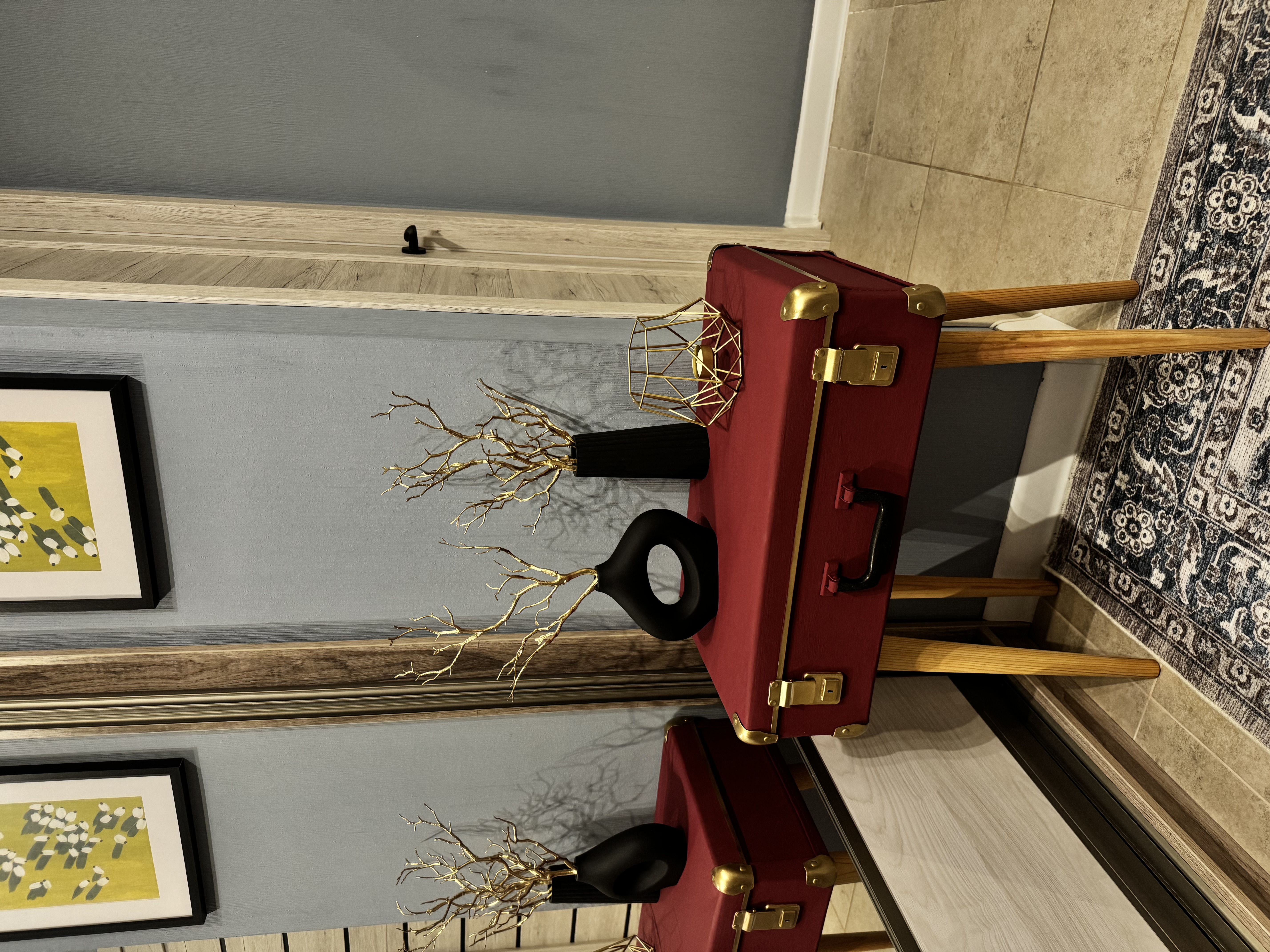 Фурнитуру чемодана покрыла золотой краской из баллончика.
