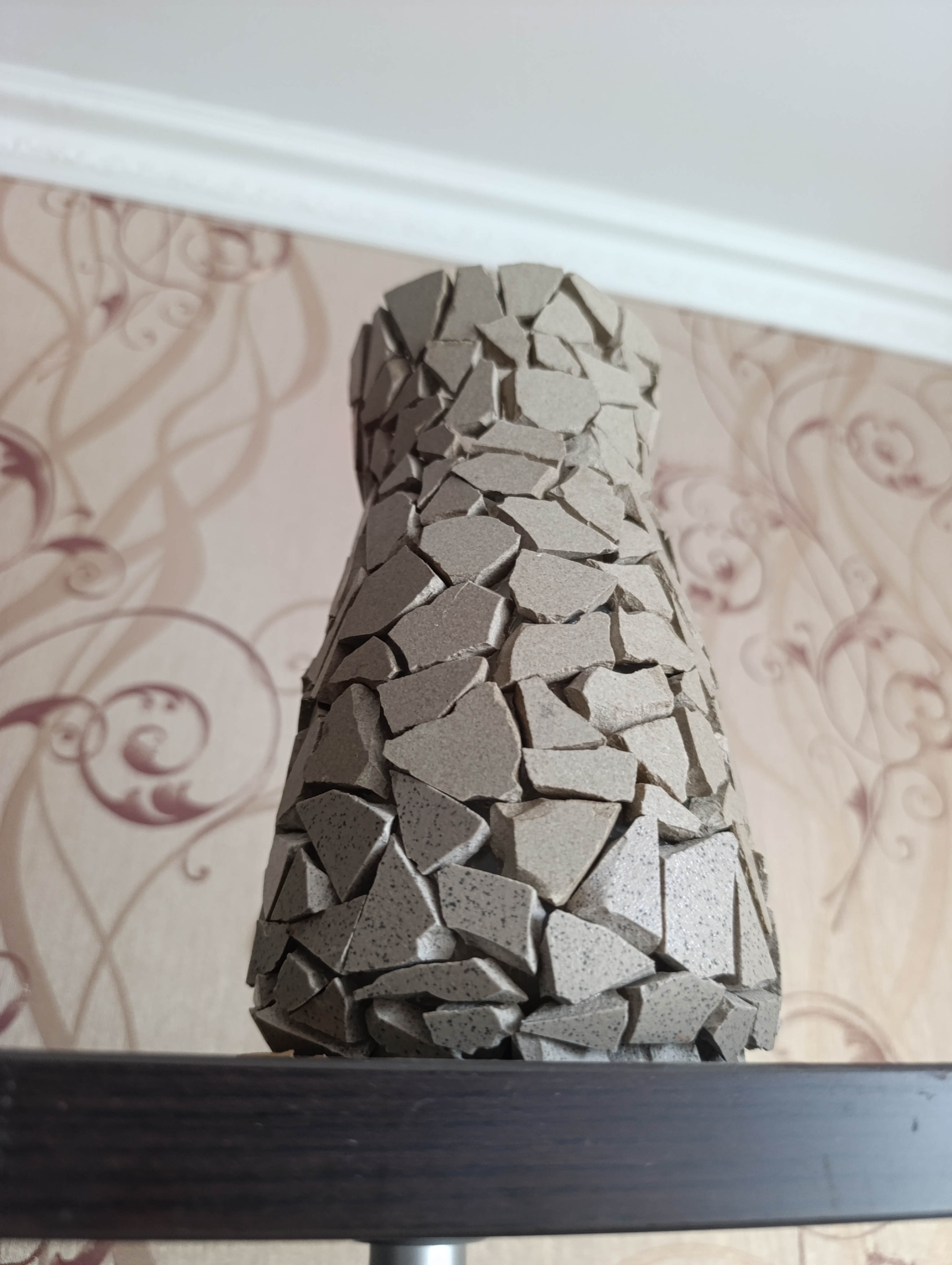 Расколола плитку на мелкие кусочки и приклеила их прозрачным клеем «Момент» на вазу. Это оказалось очень увлекательным занятием: я забываю о проблемах и медитирую, подбирая кусочки друг к другу! Потом затерла швы затиркой.