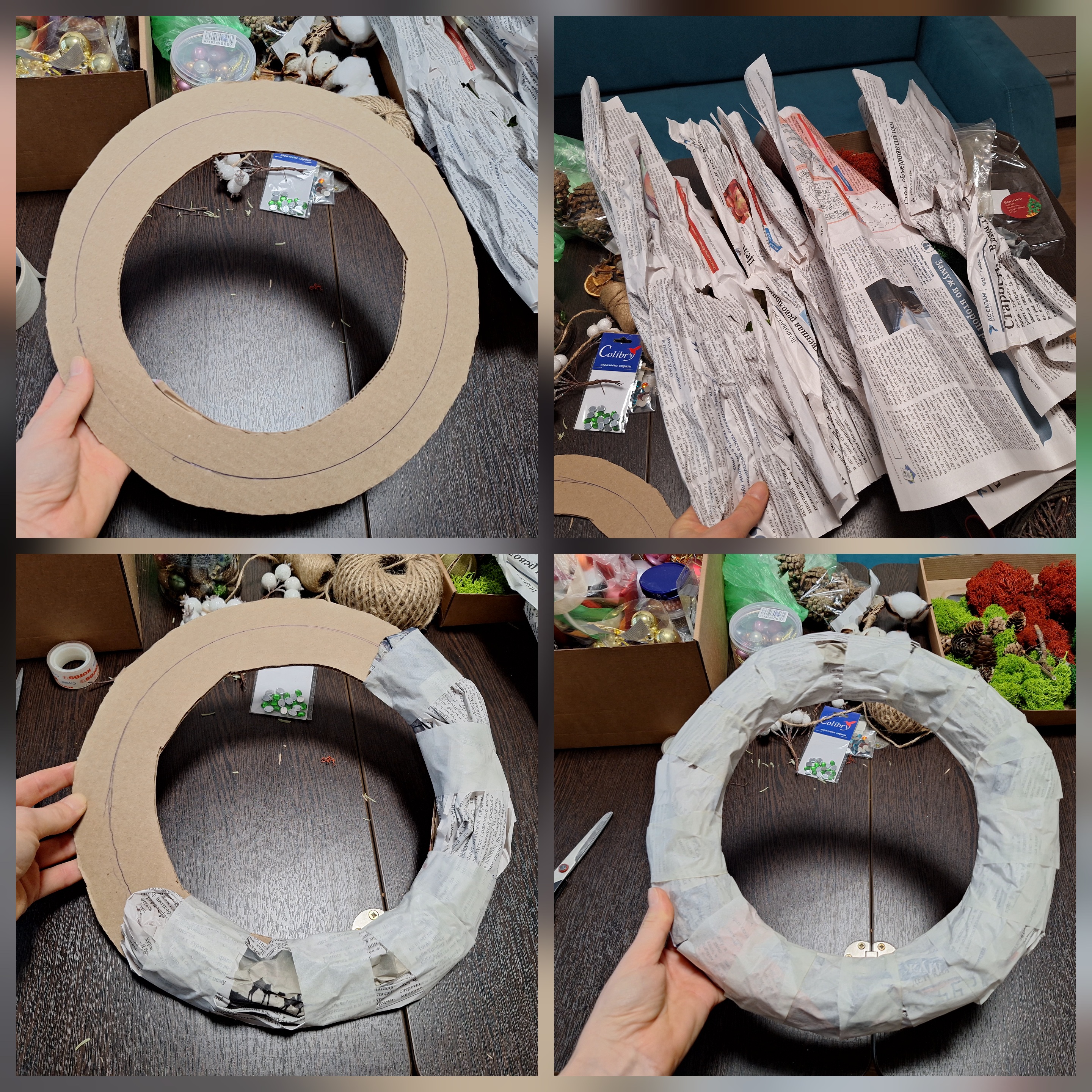- приматываем эти газеты скотчем к основе, газет не жалеем, основа должна быть плотная