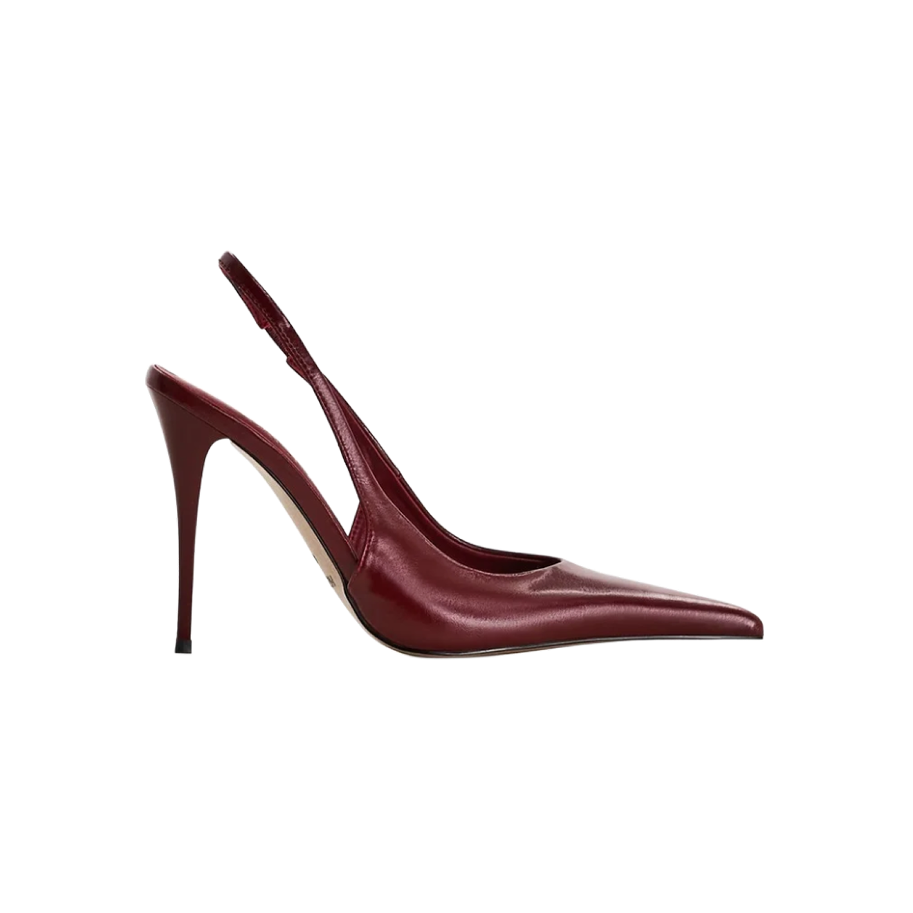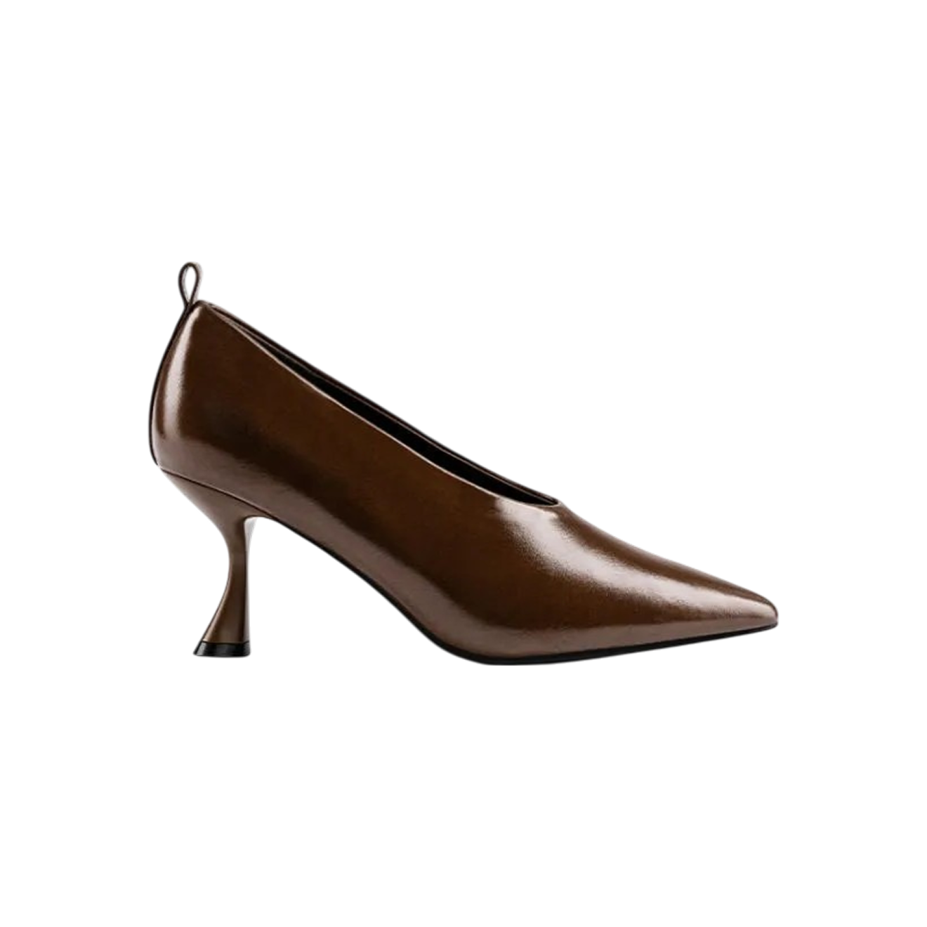 Роковая шпилька и длинный заостренный мыс этих туфель уравновешиваются благородным темно-карамельным цветом. Пара легко впишется в деловые образы в стиле power dressing и органично дополнит коктейльные наряды. В повседневных аутфитах с базовыми джинсами или платьем-рубашкой такие туфли могут выступить главным акцентом, задающим настроение всему образу