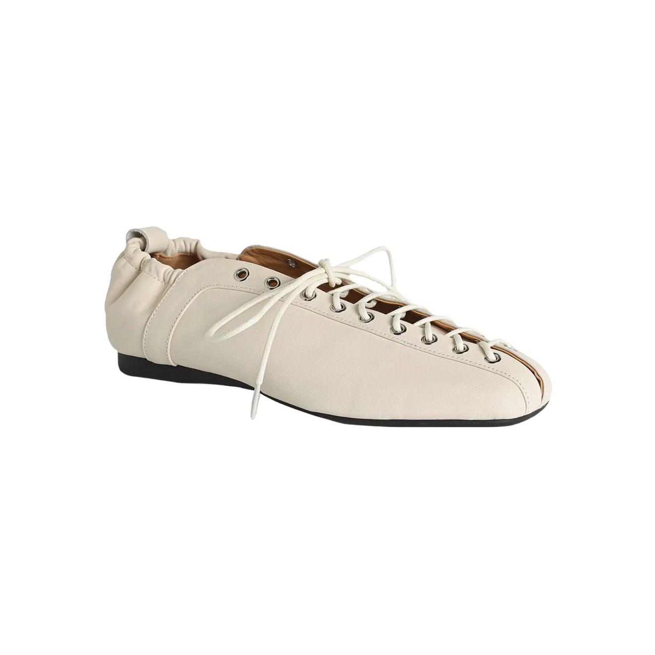 Off-White и Dolce & Gabbana дополнили шнуровкой классические лодочки, Schiaparelli и Christian Siriano — закрытые туфли, больше похожие на низкие ботильоны, Simone Rocha, Ulla Johnson и Kiko Kostadinov — балетки.
