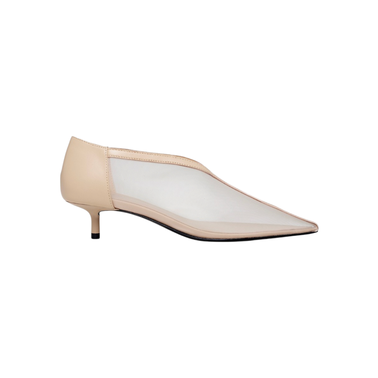 Отметим, что вырез у таких туфель может быть не только круглым. На фешен-шоу 2026 года дизайнеры представили десятки моделей с геометричным V-образным вырезом. Их можно было увидеть в коллекциях Stella McCartney, Jil Sander, Lafayette.