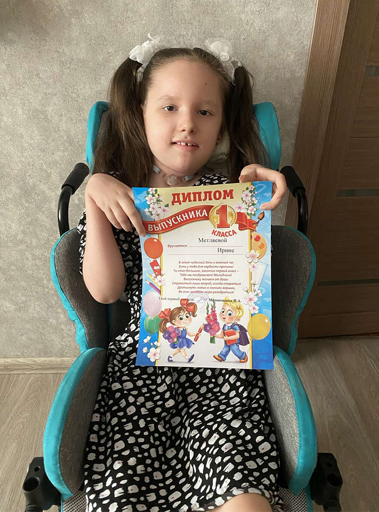 Благодаря лечению развитие болезни остановилось. Мы заметили серьезные улучшения: дочь стала увереннее двигать ручками и ножками, меньше откашливаться и поперхиваться. Недавно она начала красиво и уверенно писать, хотя раньше не могла давить на ручку. Жалеем, что Ирина начала принимать лекарства, когда многое уже было упущено.