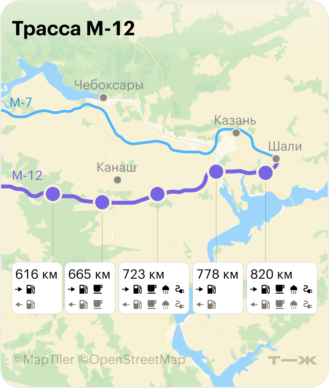 Ездил по М-12 в апреле 2025 года по маршруту Казань — Москва — Казань.