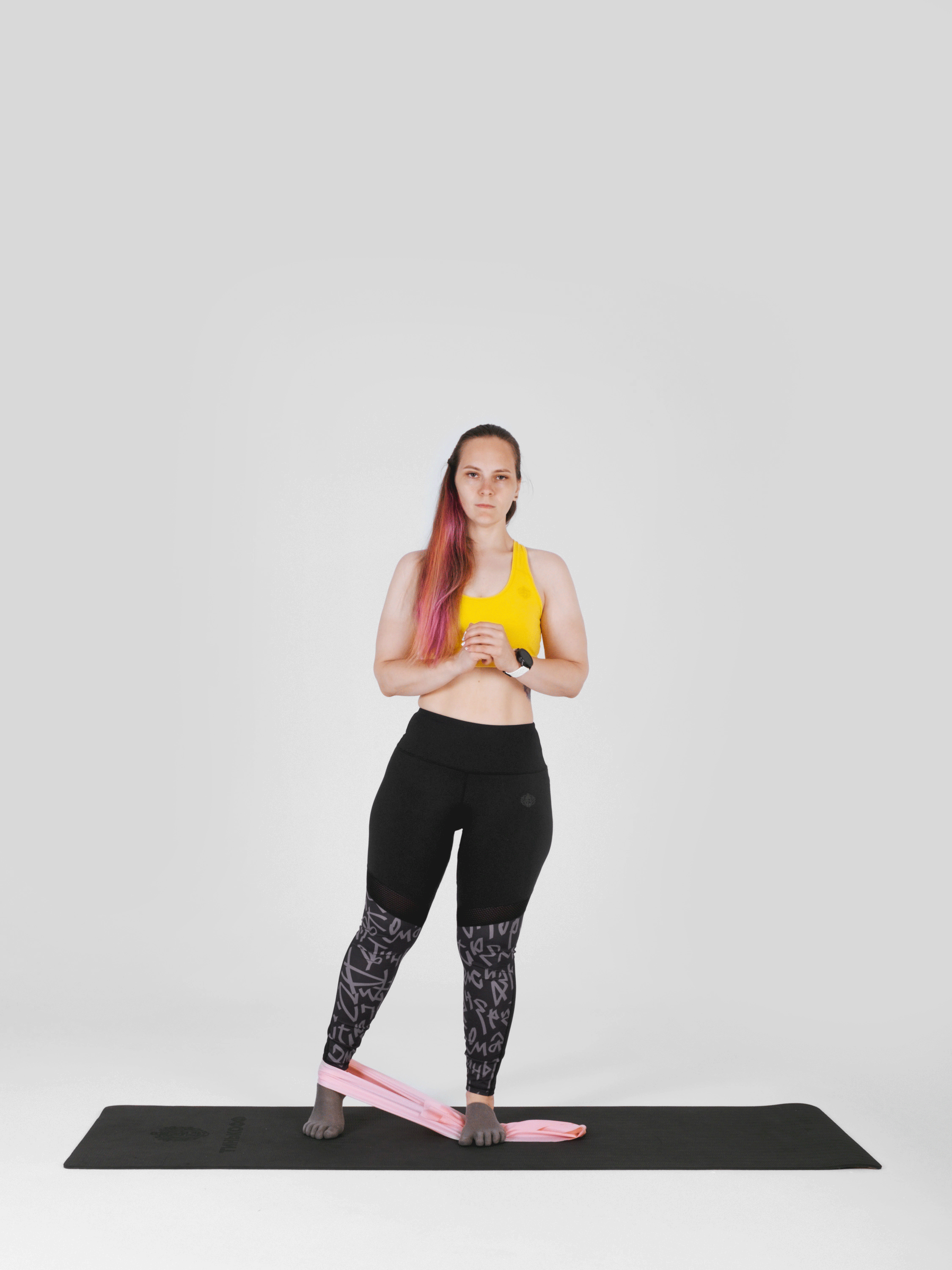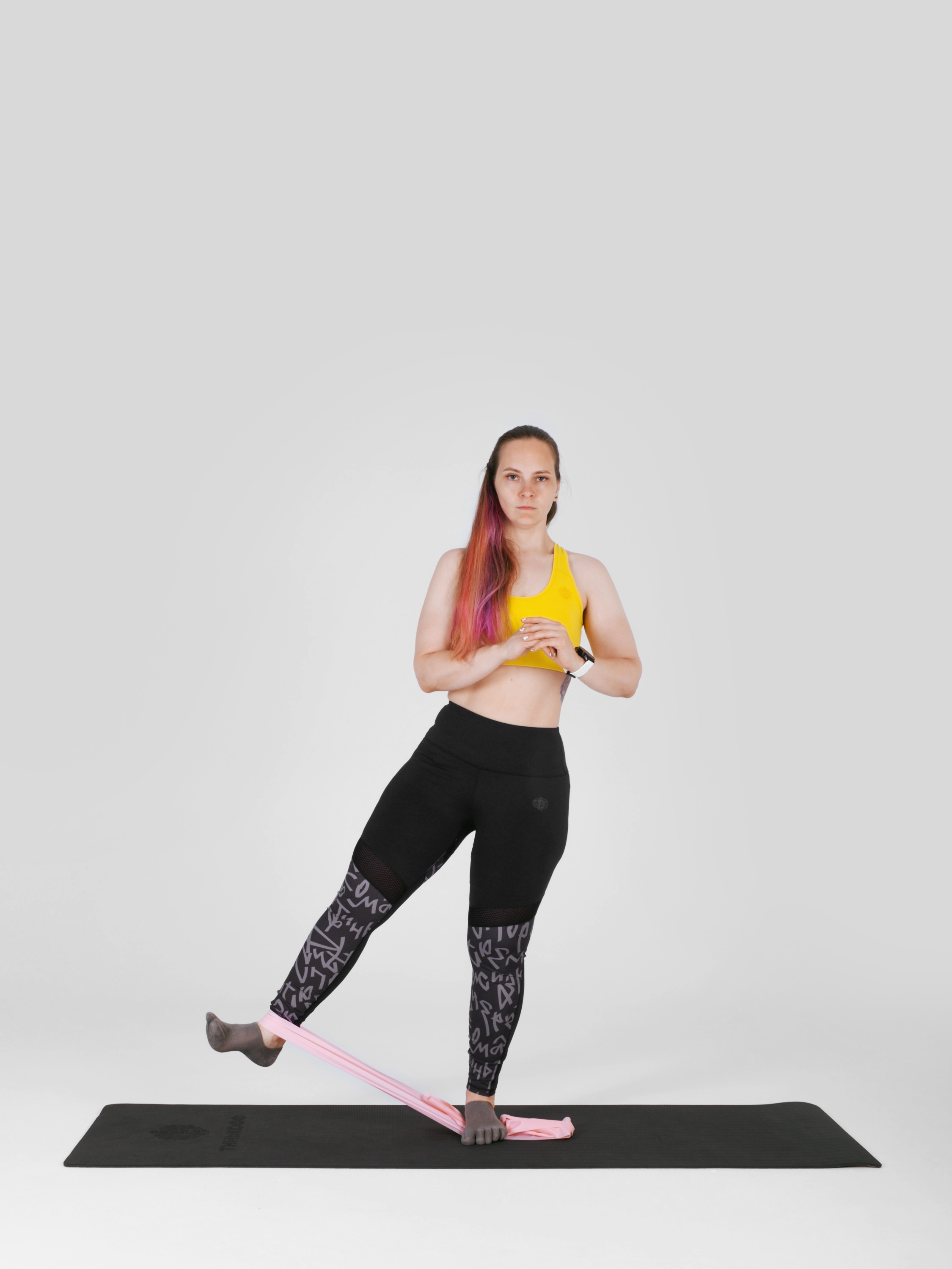 Для выполнения упражнения понадобится фитнес-резинка. Достаточно одной, но можно купить комплект с резинками разного сопротивления, чтобы регулировать нагрузку и использовать их в разных упражнениях.