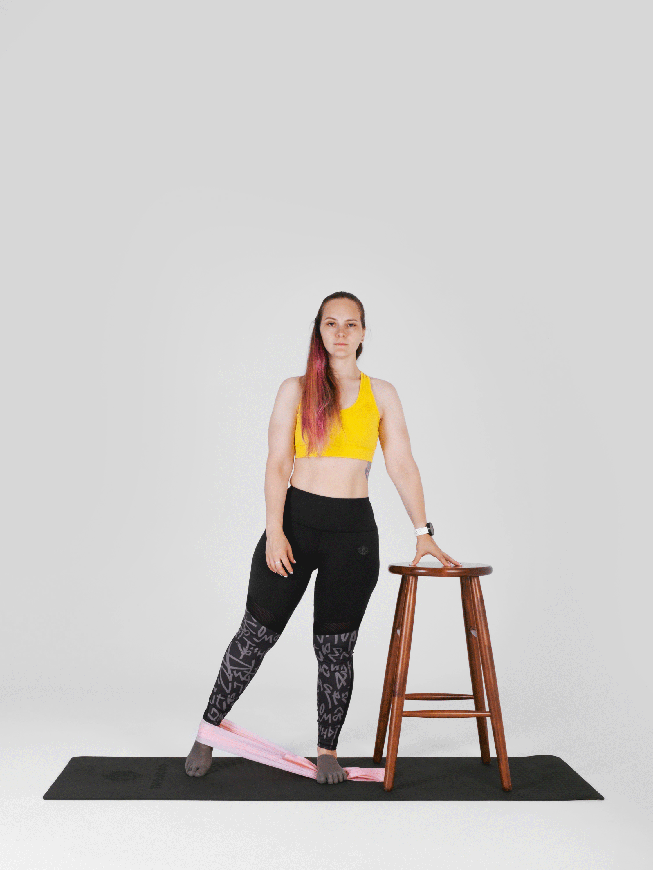 Чтобы упростить упражнение: встаньте у опоры, чтобы не приходилось держать равновесие.