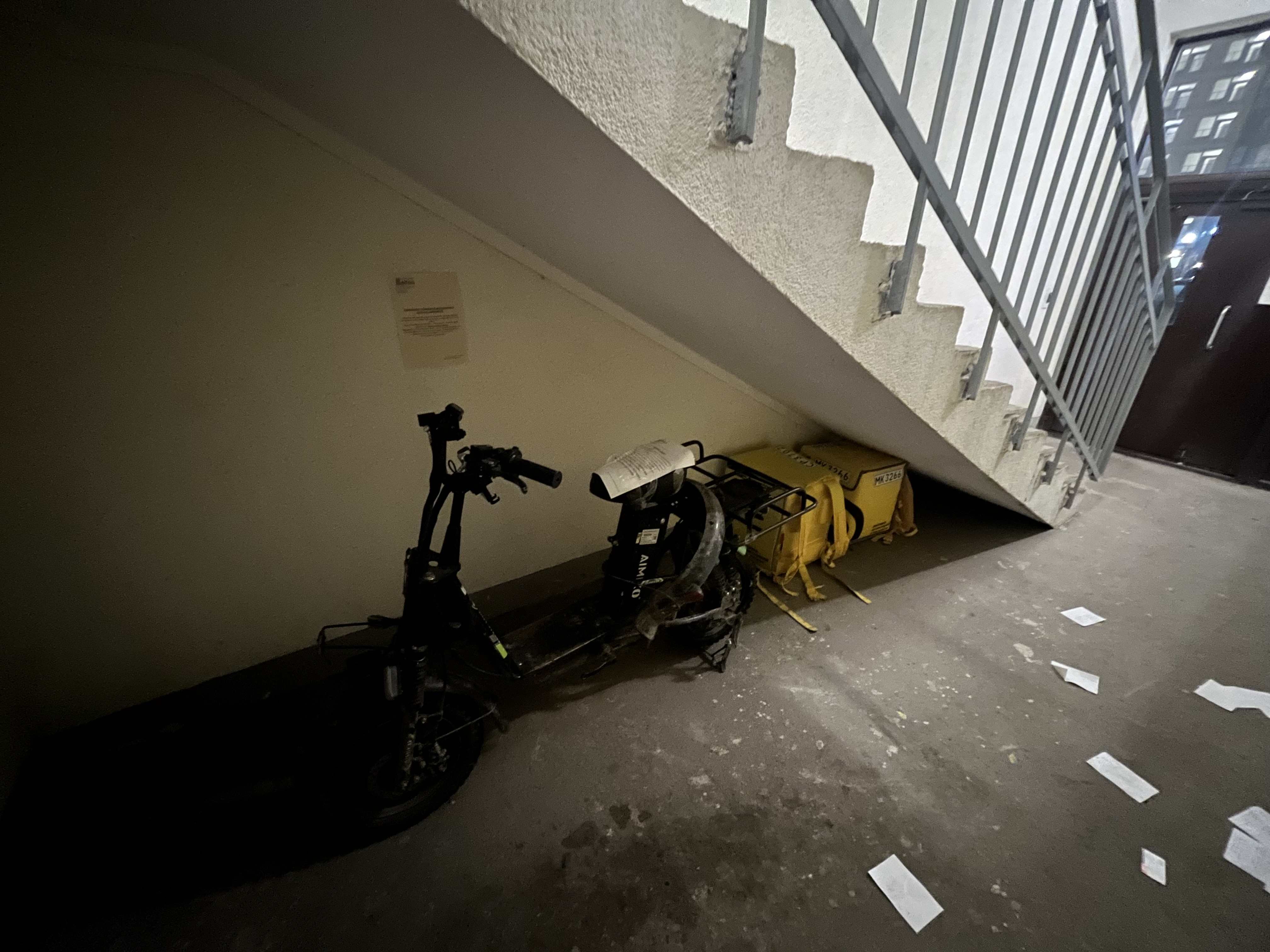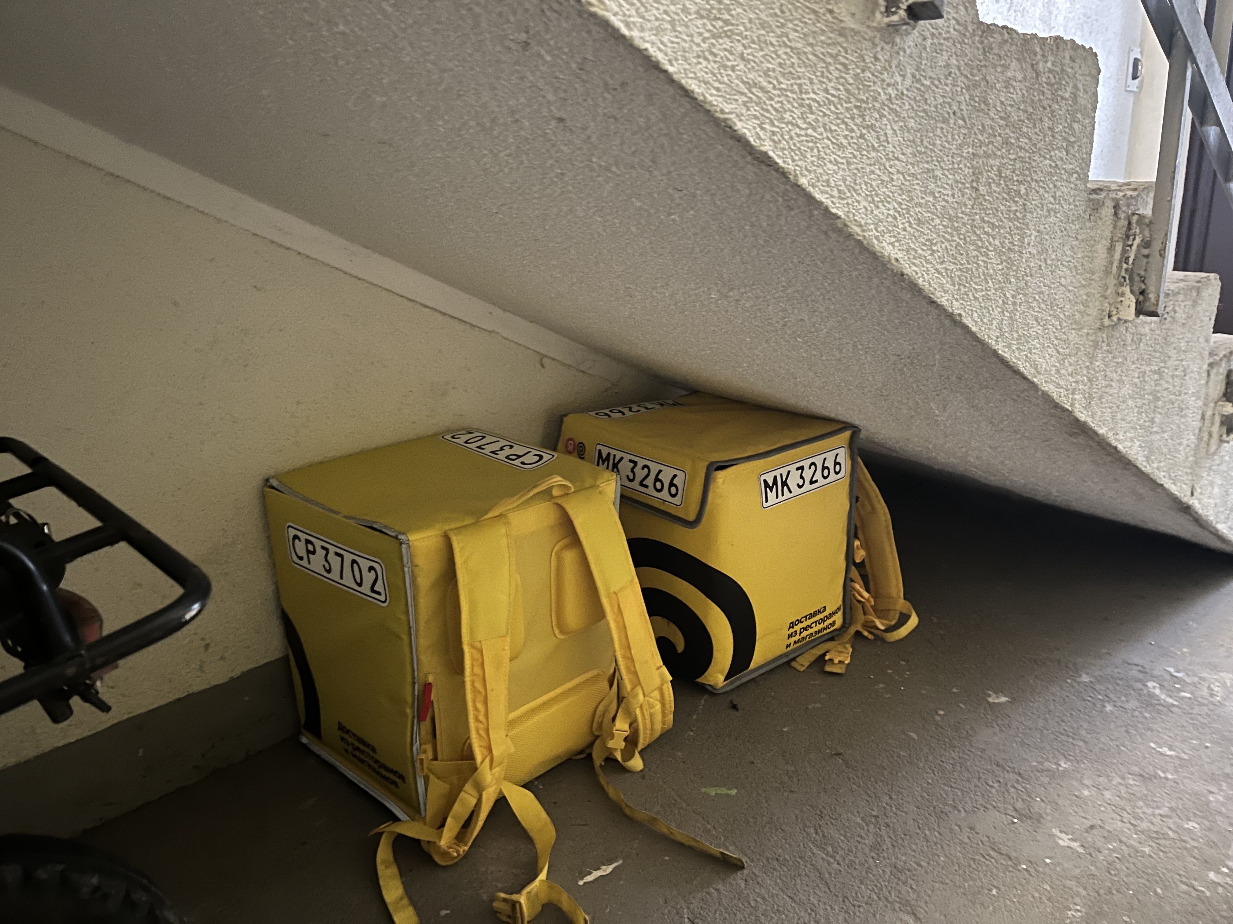 У нас повадились под пожарной лестницей оставлять свои вещи: вот кто-то свой электросамокат на зиму оставил. Доставщики Яндекс еды свои рюкзаки бросили. На прошлой неделе мопед OZON Fresh стоял.