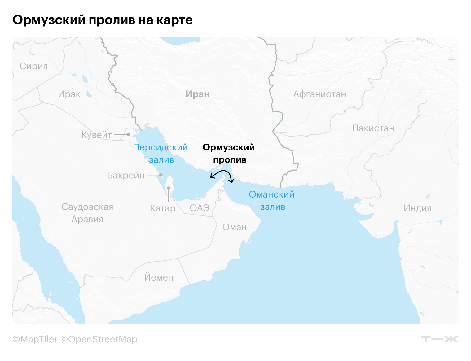 Ормузский пролив разделяет Оман и Иран и позволяет выйти из Персидского залива в Индийский океан.