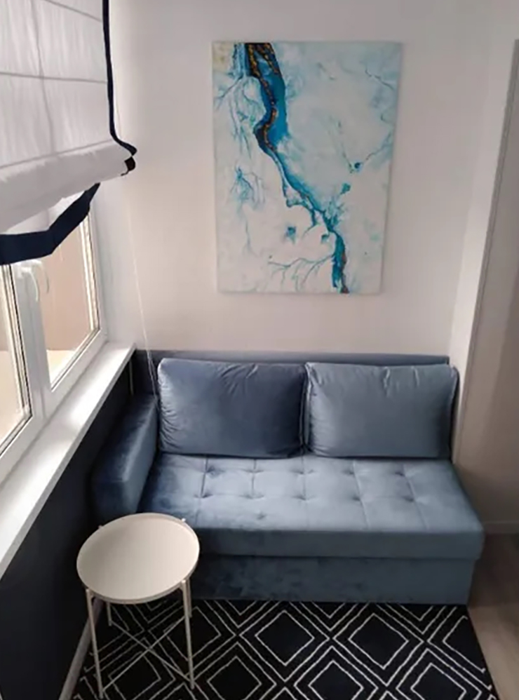 Большую лоджию в квартире мы утеплили, и теперь у меня там уютный кабинет. Диванчик довольно широкий — 1,6 м, на нем удобно сидеть и даже лежать. При необходимости можно раздвинуть — получится спальное место. Но за шесть лет мы его так ни разу и не раздвигали.