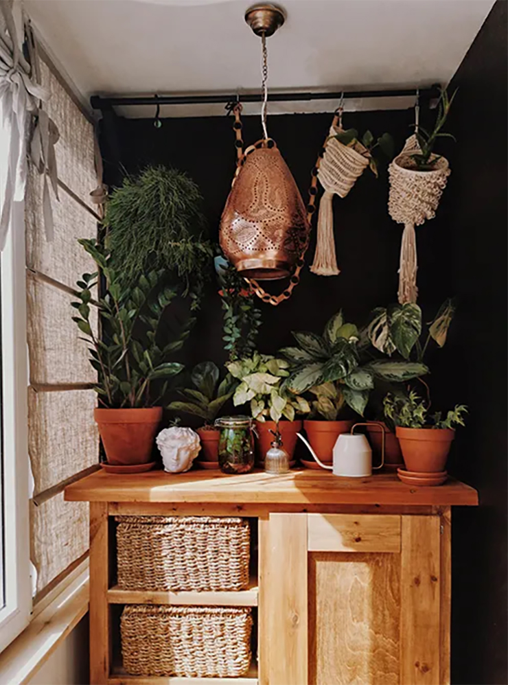 Оранжерея. Для нее понадобятся стеллажи и подвесные полки для цветов, ящики для рассады и красивые горшки. Можно организовать систему автополива. Кроме обычного света стоит продумать ультрафиолетовую подсветку для растений.