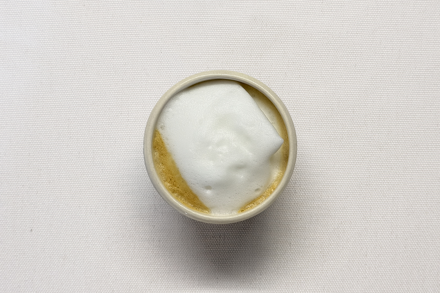 Шаг 1. Приготовьте кофе. В рожок добавьте 18 г молотого зерна, утрамбуйте, вставьте в кофемашину и сварите эспрессо.