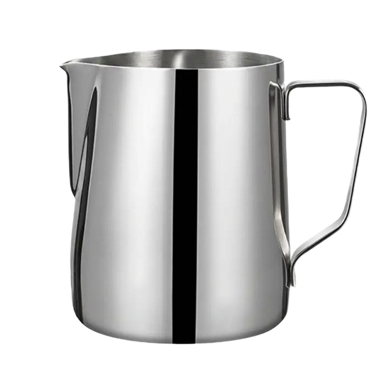 Шаг 3. Паровик погрузите в молоко так, чтобы он проходил через носик кувшина. Слегка наклоните питчер, чтобы направить капучинатор в сторону боковой стенки. Кончик паровика нужно погрузить в жидкость примерно на 1 см.