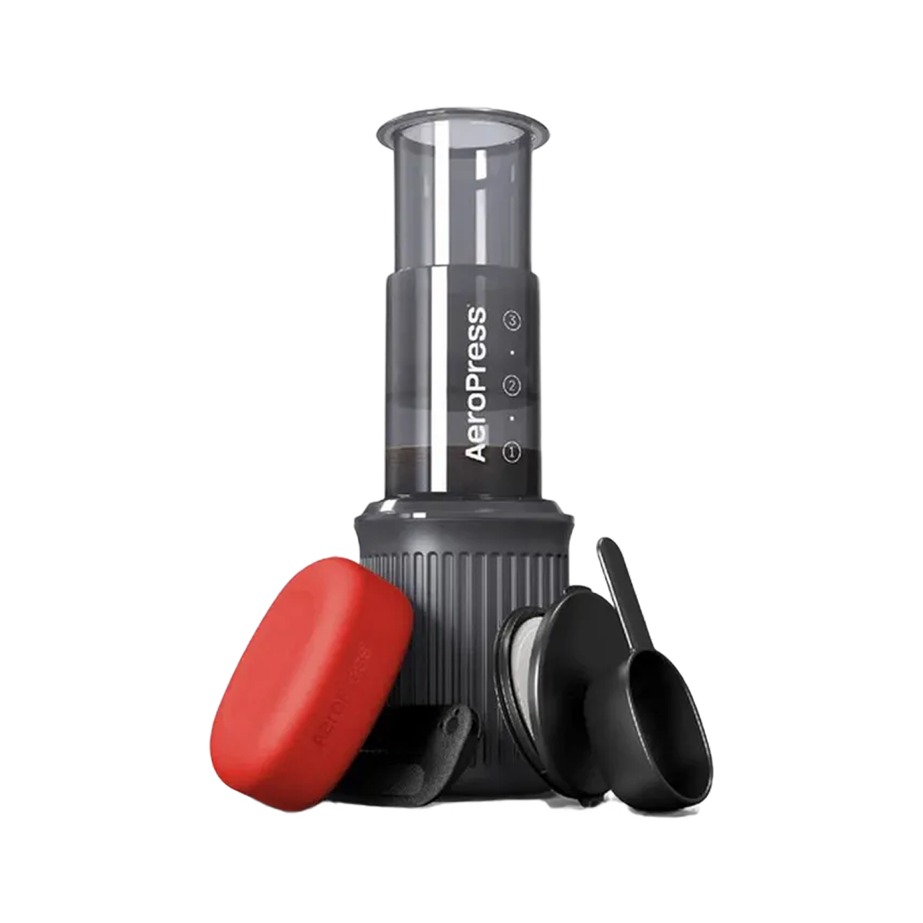 Компактная кофеварка подойдет для приготовления фильтр-кофе или крепкого напитка, похожего на эспрессо. В комплекте с аэропрессом идет стакан-футляр, так что устройство удобно брать с собой в поездки и походы