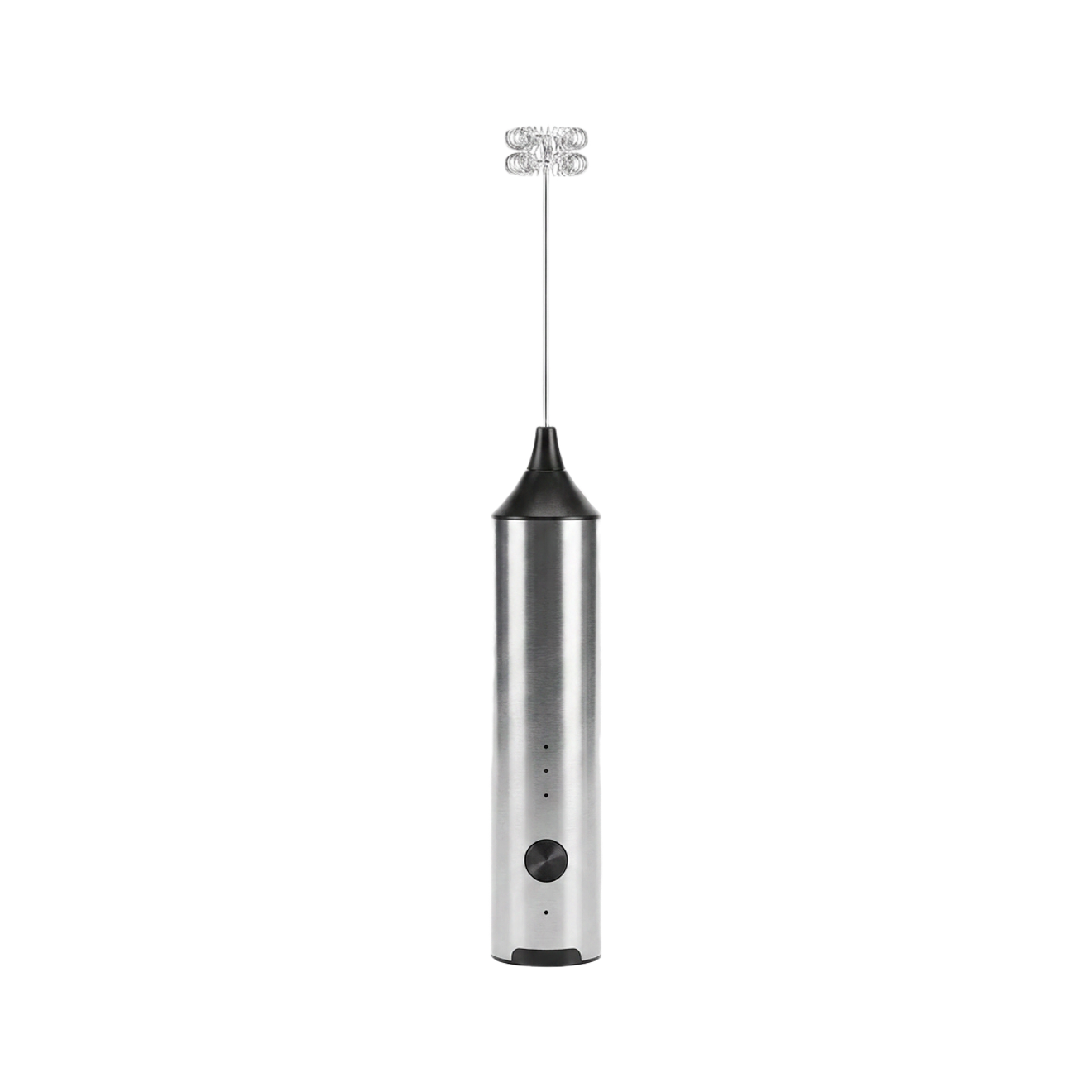 Шаг 3. Ручной капучинатор поместите в стакан так, чтобы пружина была под углом к поверхности молока. Взбивайте, пока жидкость не увеличится в объеме в 1,5—2 раза. У меня на это уходит около 30 секунд.