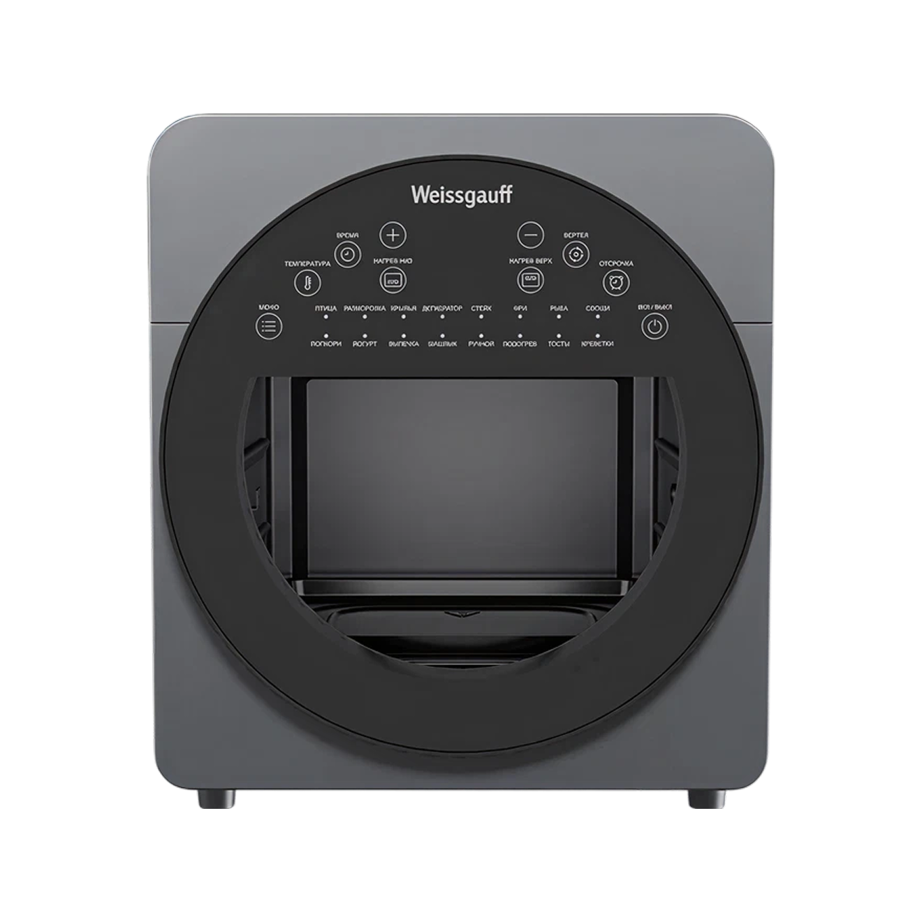 Аэрогрили-духовки (мини-печи). Они выглядят как уменьшенные духовые шкафы с откидной дверцей. Занимают больше места, но позволяют готовить на семью из пяти-шести человек на нескольких уровнях одновременно. В них можно установить вращающийся вертел для запекания курицы или шашлыка, а также использовать несколько решеток для сушки фруктов или овощей.