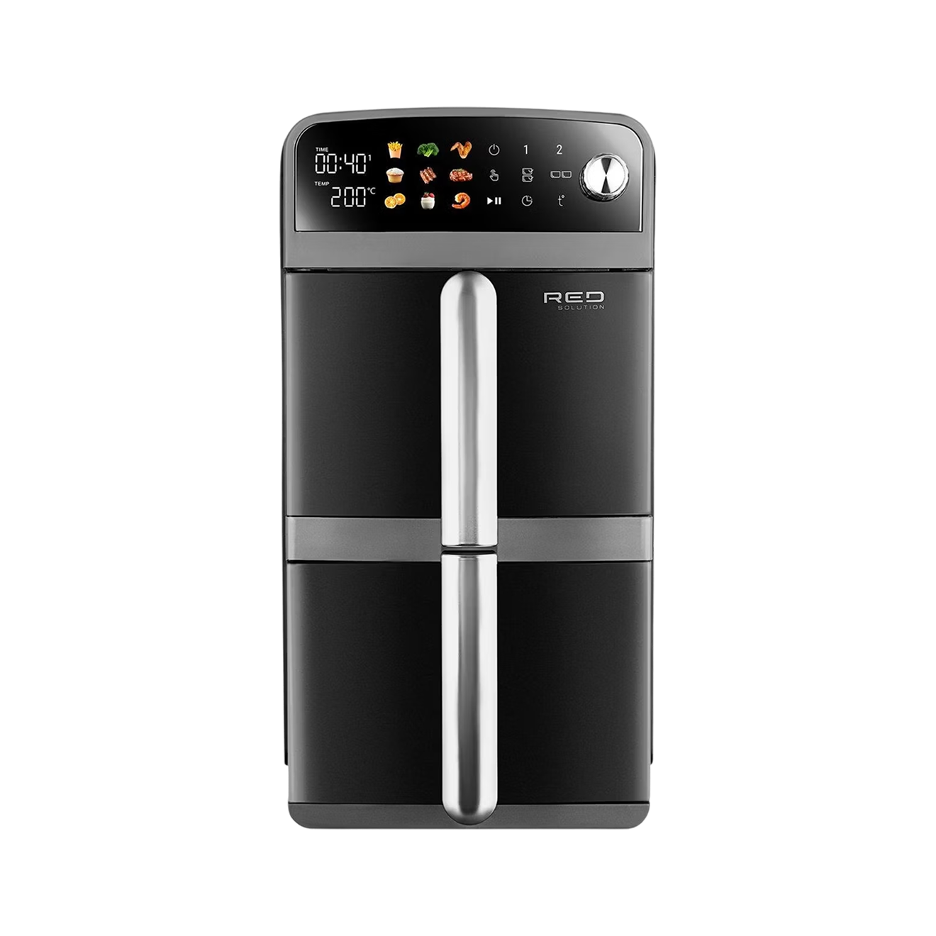 Просторная 9-литровая чаша, в которой можно приготовить целую курицу или римскую пиццу, легко трансформируется в две отдельные — без смешивания вкусов