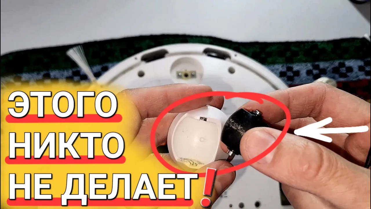 В колесах тоже скапливаются волосы, нитки и мелкий мусор. Больше всего проблем обычно доставляет передний ролик: снаружи он может выглядеть чистым, а внутри уже собирается плотный комок сора. Из-за этого робот хуже ездит, чаще застревает, сильнее шумит или с трудом переезжает пороги.