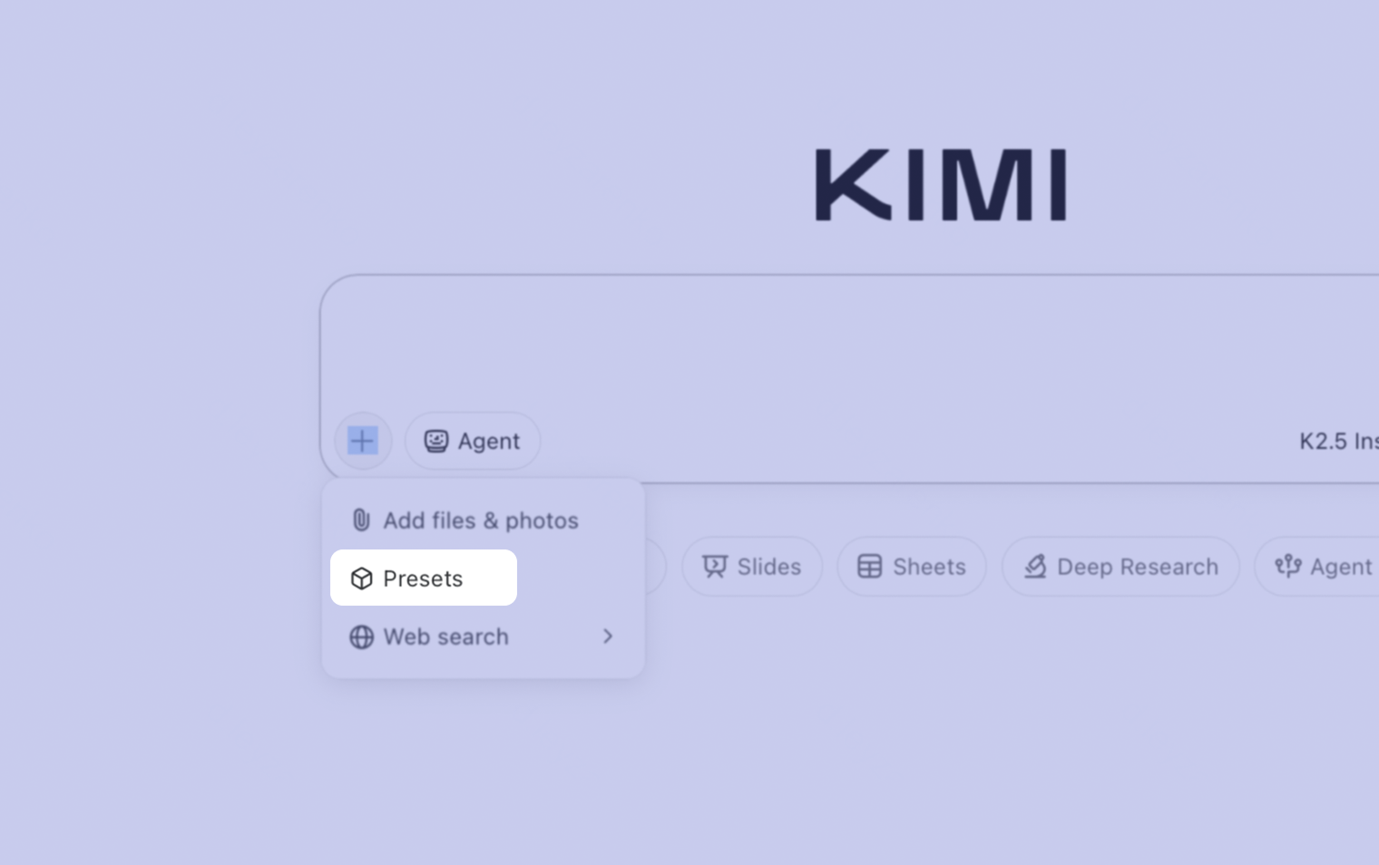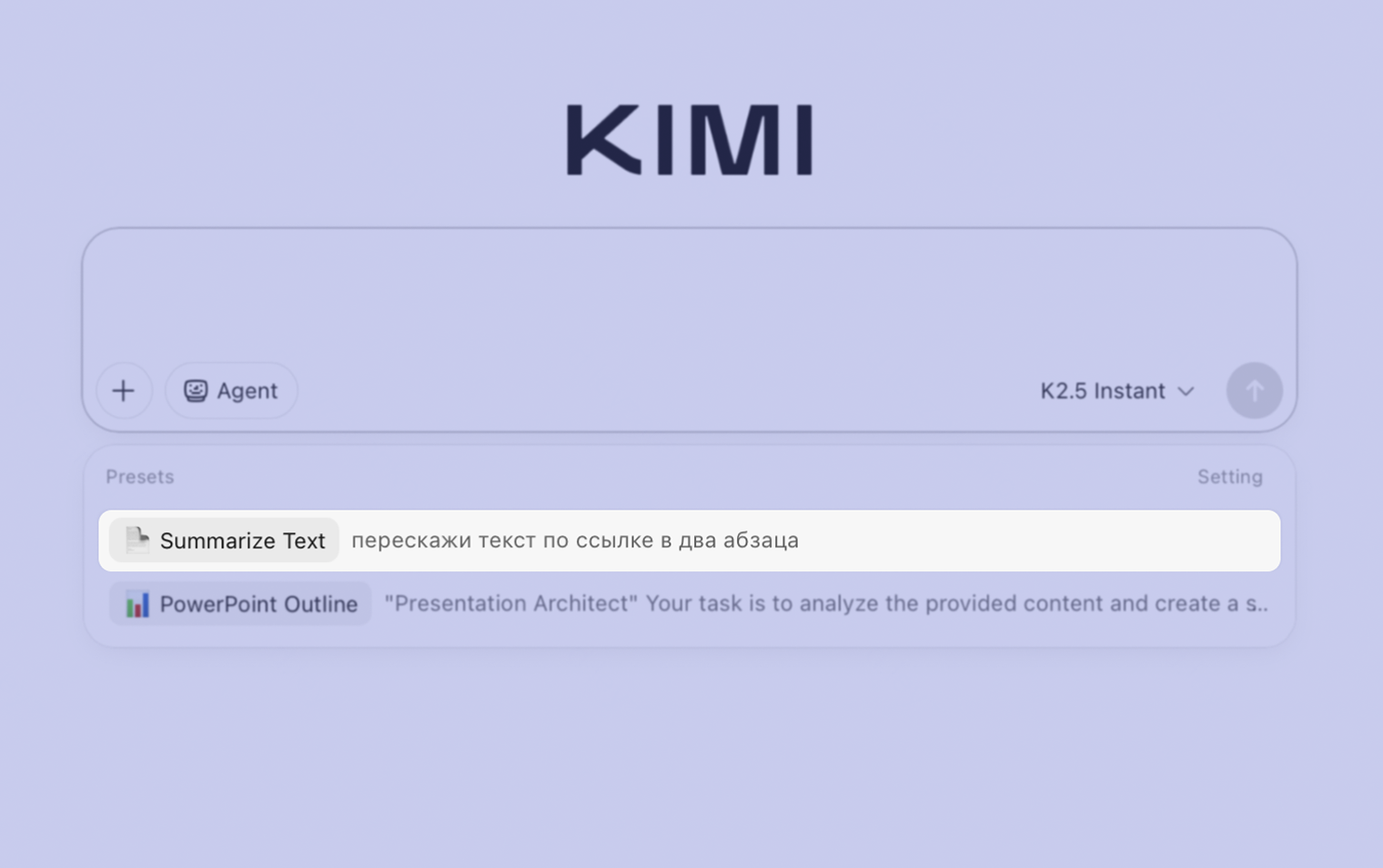 - Agent — ИИ-агент Kimi для комплексных задач, требующих до получаса реального времени.