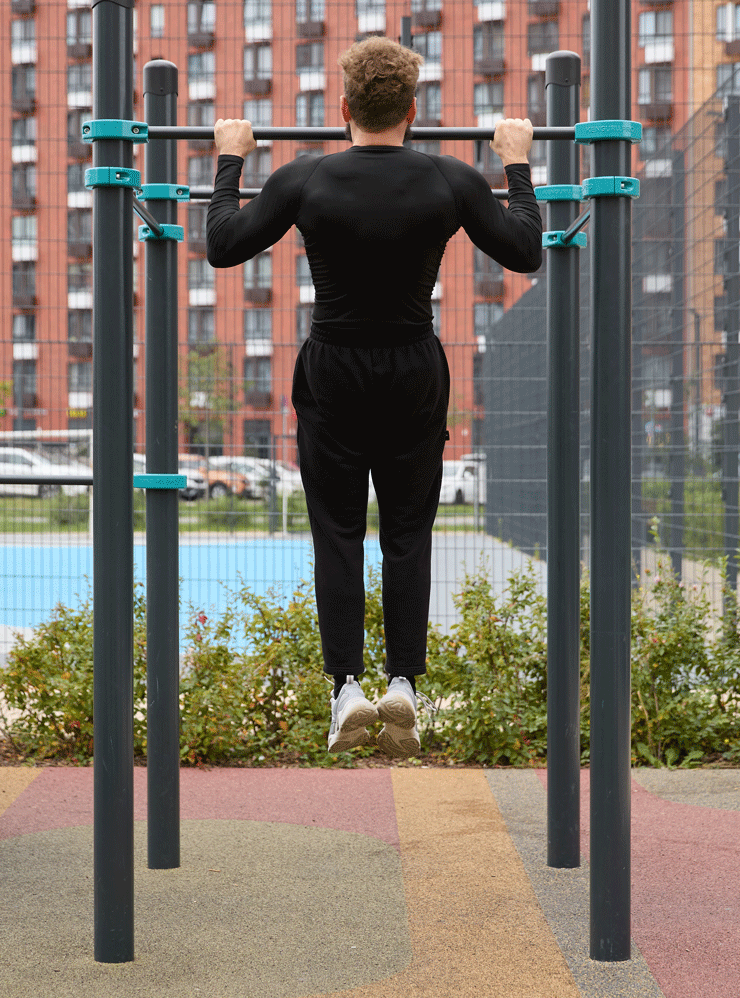 Правильное завершение упражнения. После завершения подхода нельзя спрыгивать с турника — это может привести к травме спины.