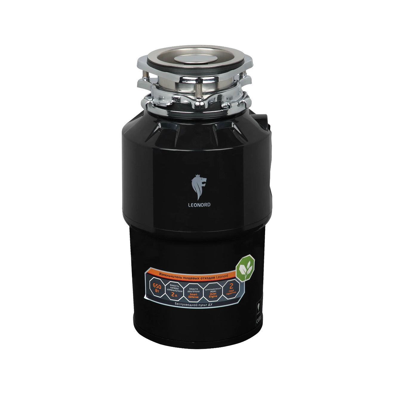 У измельчителя камера объемом 2 л, поэтому его можно использовать большим семьям. Устройство подключается к посудомоечной машине. Есть защита от перегрузок и система шумоподавления. Запустить обработку отходов можно с помощью дистанционного пульта управления