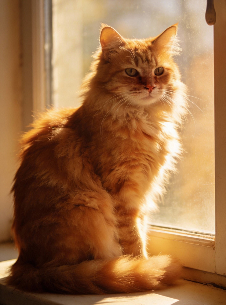 Например, вместо «кот» лучше написать: «Пушистый, рыжий, полосатый кот сидит на подоконнике, мягкий утренний свет из окна, кинематографичная композиция, небольшая глубина резкости, объектив 85 мм, фотореализм».