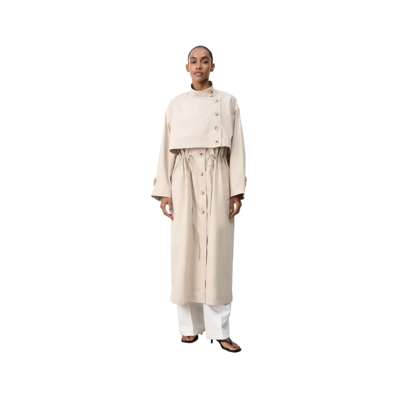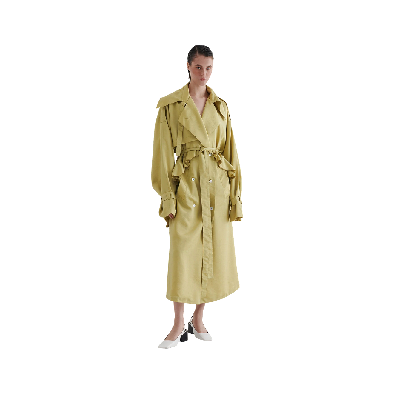 Тренч с заметной деталью — с капри и балетками