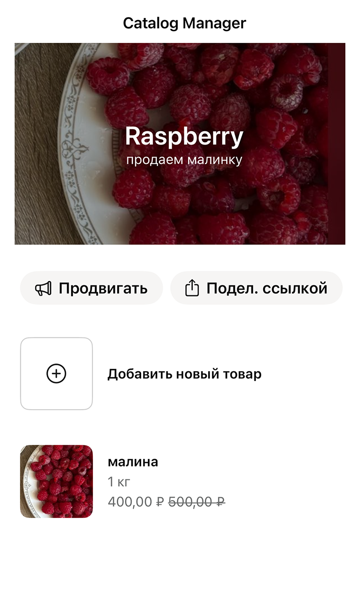 Каталог — это витрина ваших товаров. На ней пользователи могут смотреть расценки и фотографии.