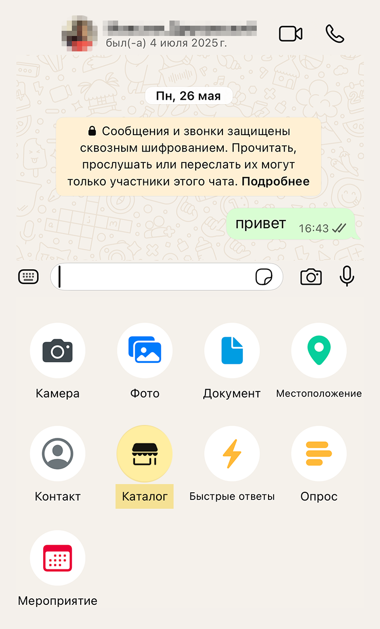 Короткой ссылкой на каталог легко поделиться в мессенджере. Каталоги также можно отправлять в чаты с клиентами.