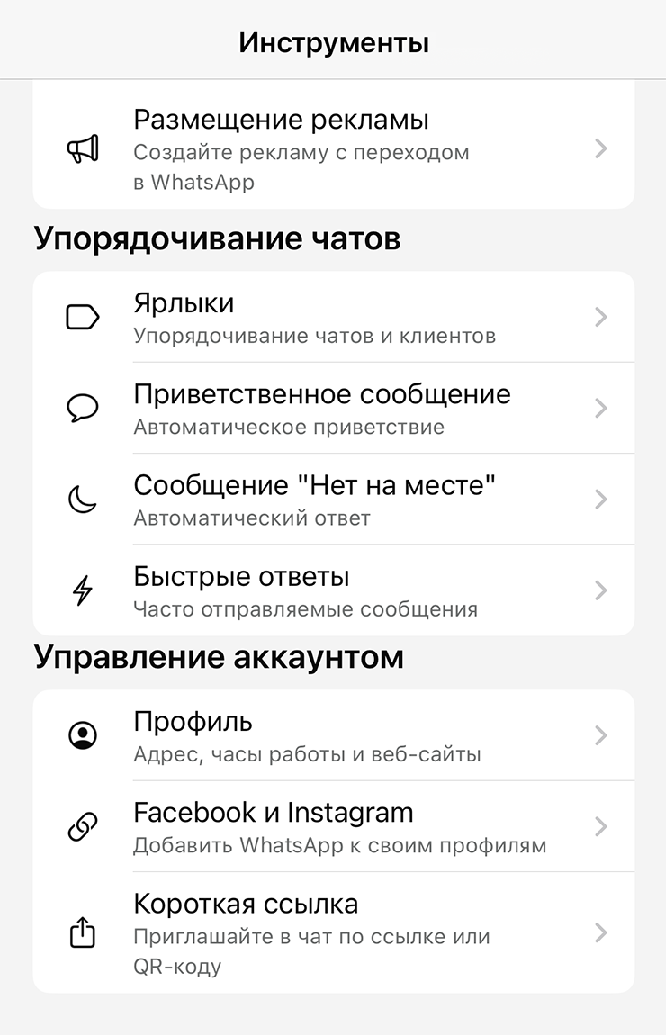 Какие есть возможности у бизнес-аккаунта в WhatsApp*