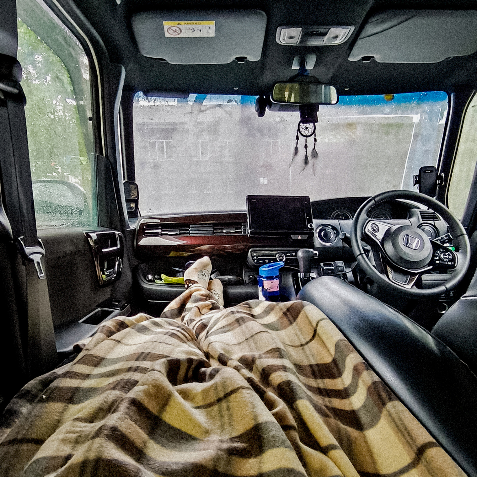Honda N-Box оказалась очень удобной для дальних поездок. Я спал в ней шесть раз, надувал матрас и помещался в полный рост. Заваривал чай и слушал музыку. На трассе Honda N-Box проявила себя неожиданно хорошо. До скорости 100 км/ч — отличный авто. Обгоны тоже давались нормально, спокойно разгонял машину до 120—130 км/ч, иногда опережал несколько фур подряд. Но для этого нужно было убедиться, что впереди достаточно расстояния до встречных автомобилей.