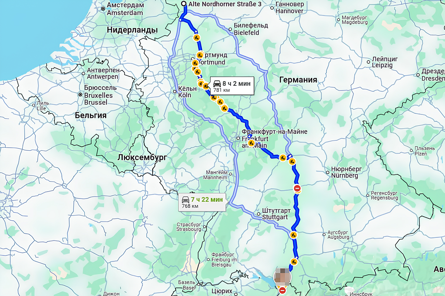 Подходящий вариант нашелся довольно далеко — на северо-западе Германии, на границе с Нидерландами, в городе Оснабрюк. Но это меня не пугало. Во-первых, у меня большой водительский стаж — с 2013 года. Во-вторых, я готов потерпеть трудности и приложить усилия, чтобы купить близкий к идеальному вариант для длительного и ежедневного использования всей семьей. В-третьих, было интересно прочувствовать немецкие автобаны без ограничений скорости.