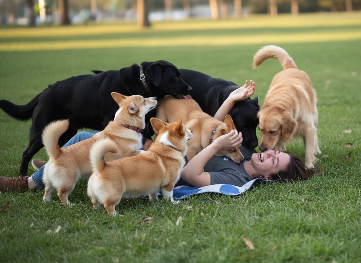 Все началось с того, что на меня напали. Стая была беспощадна: три корги, лабрадор и золотистый ретривер. Они пытались слизать меня с лица земли и снести волной своей милоты. Я принял бой. Пришлось валить их на землю по очереди и кувыркаться от всей души. Полтора часа ада, счастья и собачьей слюны.😄