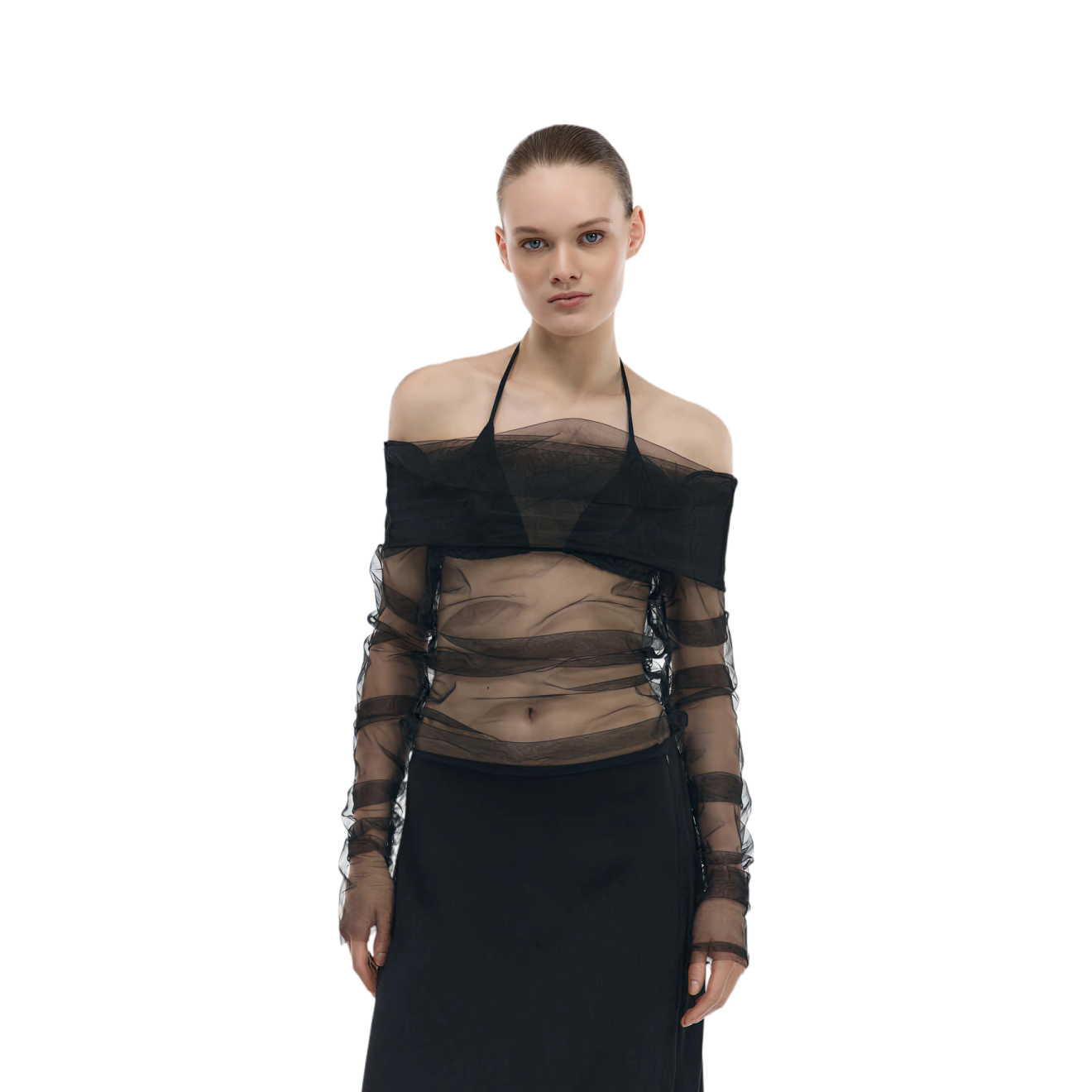 Gate31 так часто выпускают вещи с моим именем, что скоро я смогу составить из них полноценный гардероб. Наиболее точно передает мою тягу к эксгибиционизму мой характер этот полупрозрачный топ. Он сразу выдает во мне drama queen: все из-за загадочных драпировок и фатина, который ассоциируется у меня с театром и балетом. Пока не придумала, с чем его носить, но вещица занятная!