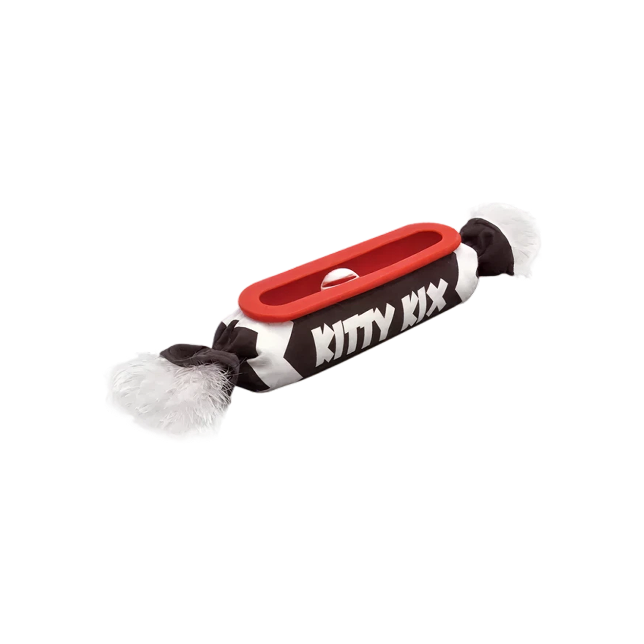 Кикер — крупная игрушка из ткани с наполнителем — помогает кошке сбросить напряжение. Животное может двигать кикер, кусать его, бить лапами и царапать. Или гонять в нем шарик по желобу. В наполнитель добавлена кошачья мята — она привлечет внимание животного