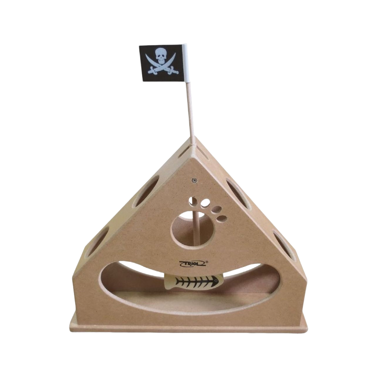 Игрушку из МДФ нужно поставить на пол и качнуть маятник. Животное может сразу же приступить к охоте за маленькой рыбкой, которая находится внутри корпуса. Впрочем, некоторых котов может заинтересовать и пиратский флаг. Высота конструкции 24 см, поэтому игрушка подойдет даже небольшим животным