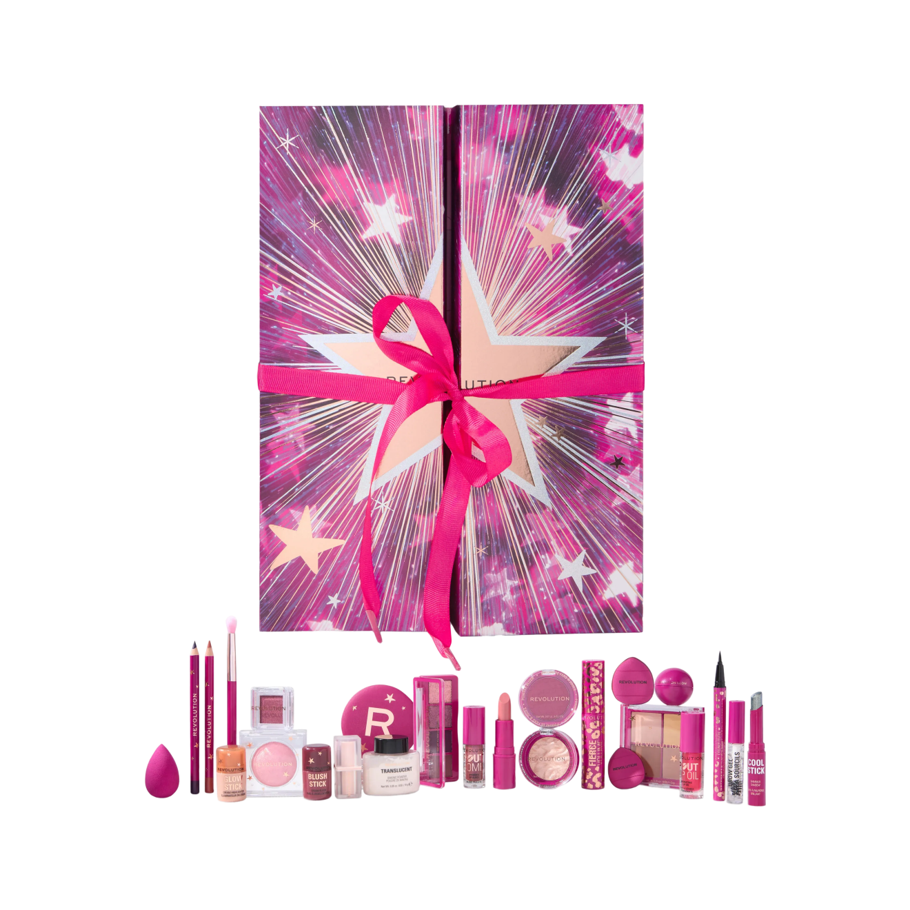 Адвент-календари этой британской марки косметики всегда отличаются ярким оформлением и хорошим наполнением. Внутри — 24 продукта для создания полноценного макияжа: спонж, силиконовая основа, палетка теней, несколько помад, хайлайтер и многое другое