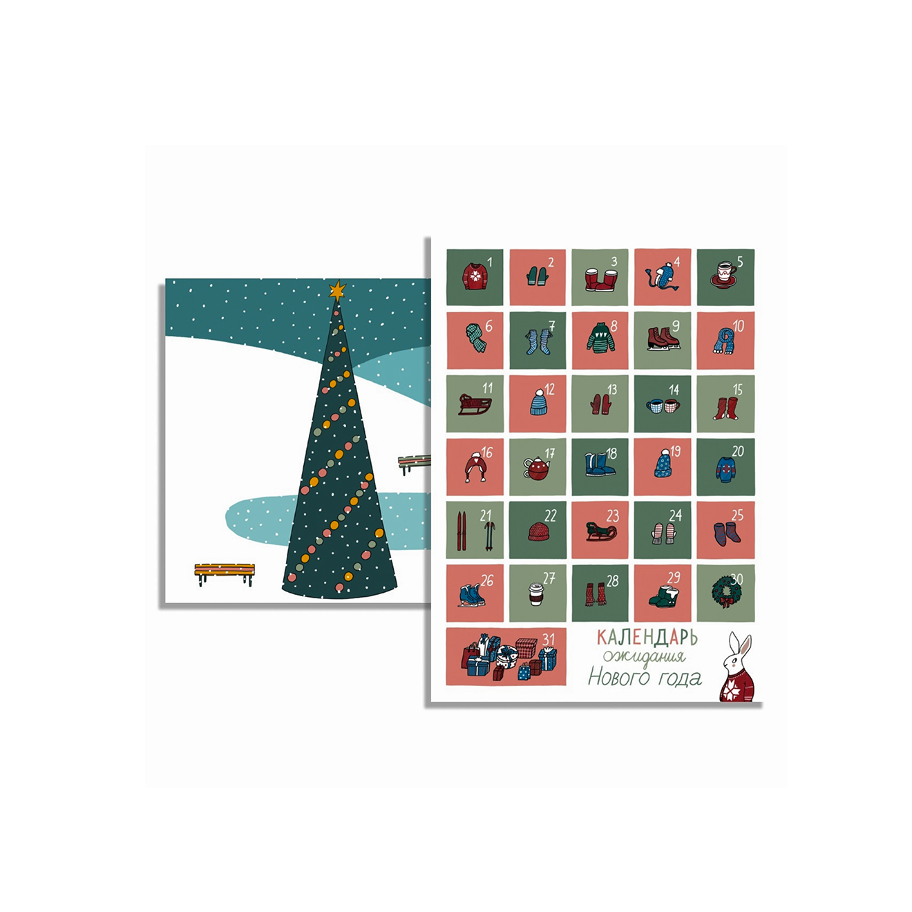 Здесь в течение 31 дня вам предстоит клеить на основу стикеры с изображением зайцев, катающихся на коньках и санях вокруг елки в ожидании Нового года. В конце у вас получится небольшая картина, которую можно использовать как праздничный декор