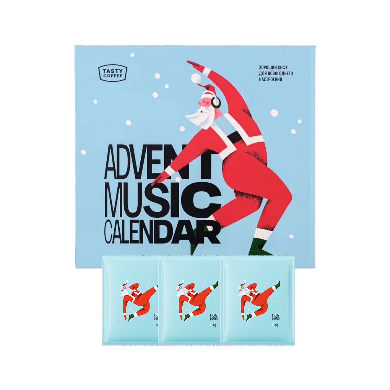 Внутри кофейно-музыкального адвента — набор из дрип-пакетов с разными сортами кофе, к каждому из которых создатели подобрали определенную музыкальную композицию. Порядок действий такой: завариваете дрип, сканируете QR-код, включаете трек и наслаждаетесь предновогодней атмосферой