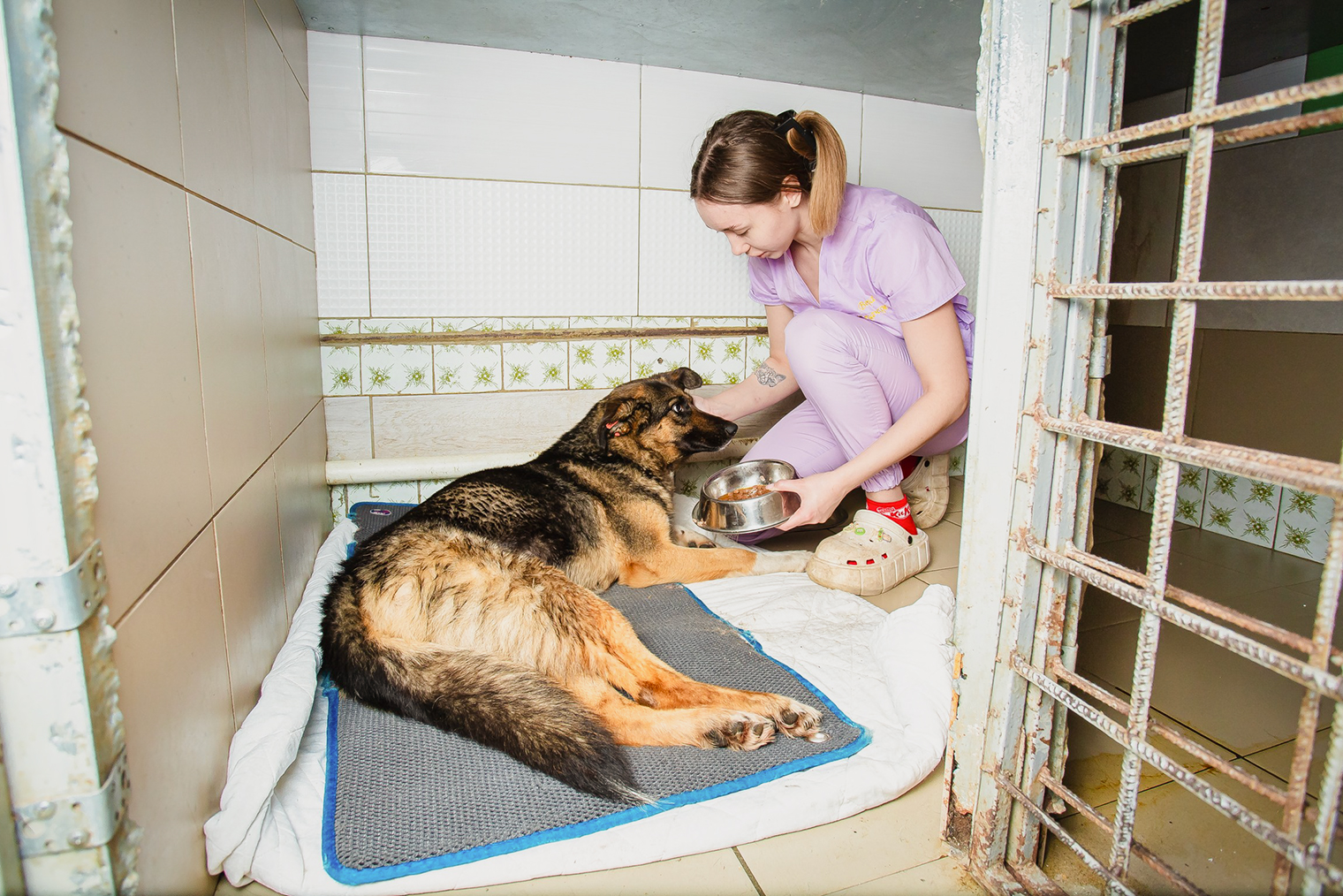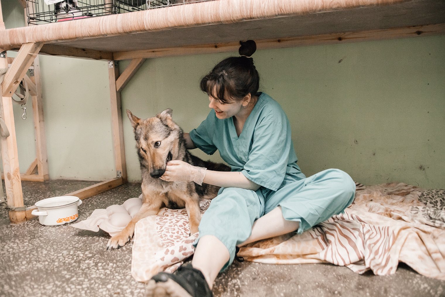 Сегодня в фонде работает 10 сотрудников. Санитар, или младший сотрудник по уходу, кормит и выгуливает животных, следит за чистотой. Ассистенты — люди с ветеринарным образованием — выполняют различные врачебные манипуляции. Например, ставят уколы, обрабатывают раны, вакцинируют зверей и так далее. Врачи проводят первые осмотры, когда кошка или собака попадает к нам, назначают обследования и лечение. Также в приюте есть кинолог — он занимается адаптацией и социализацией собак.