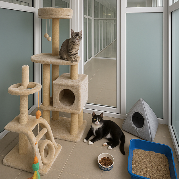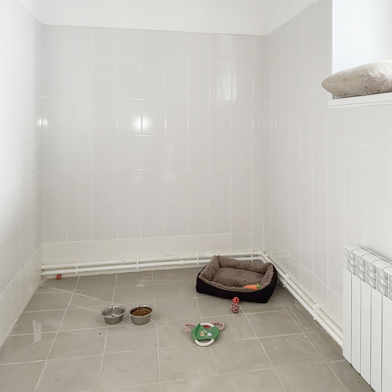 В блоках, где животные проходят карантин и лечение, мы сделали большие медицинские вольеры — в два-три раза больше нормативов . Мы хотели, чтобы собаки и кошки могли не просто находиться в безопасности, а жить: свободно двигаться, играть, гулять, а главное — иметь возможность уединиться и отдохнуть. Обстановка, в которой находится животное, влияет на скорость восстановления после лечения.